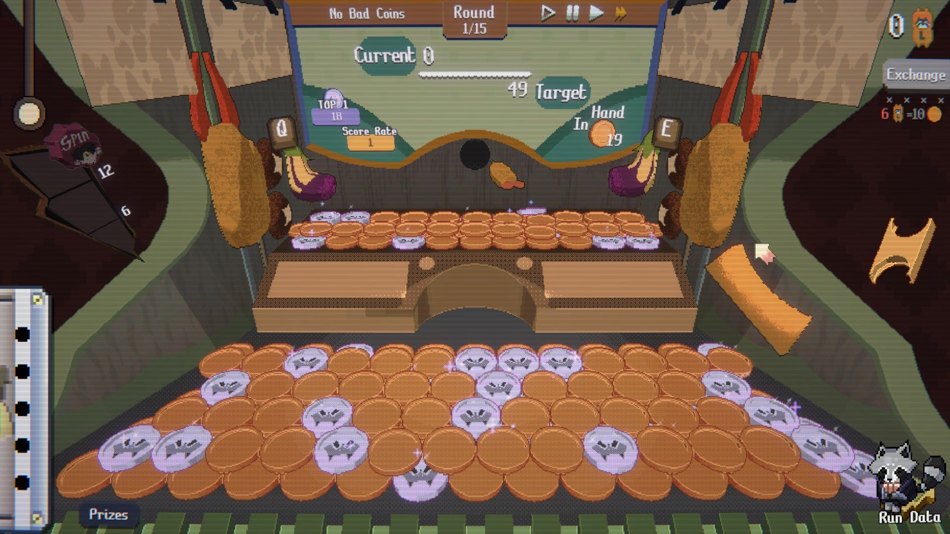 I was initially a bit doubtful about Raccoin. Coin-pushing games usually lack complexity – you just put coins in and hope they knock others forward to win points or money. Unlike games like Balatro which use many card combinations and rules for interesting gameplay, coin-pushing is typically very straightforward. However, I was quickly proven wrong. Raccoin cleverly uses this simplicity to create surprisingly well-developed and subtle game mechanics.
