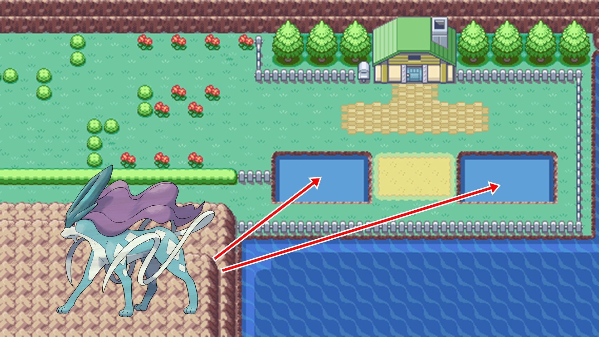 - Save near the Tall Grass or Pond area. Raikou, Entei, and Suicune in any Kanto Route location.