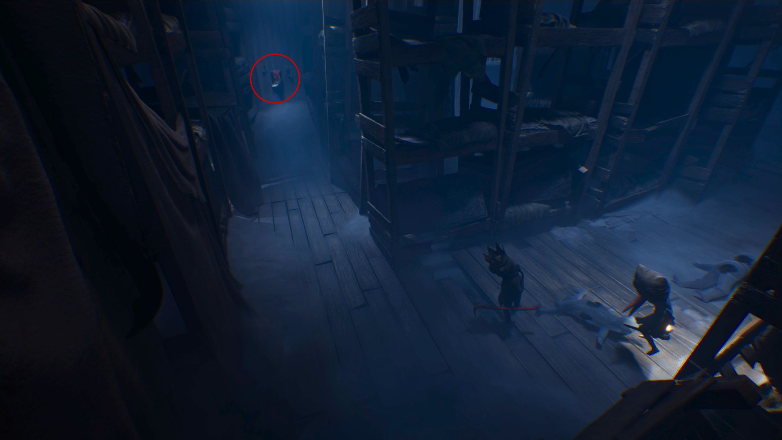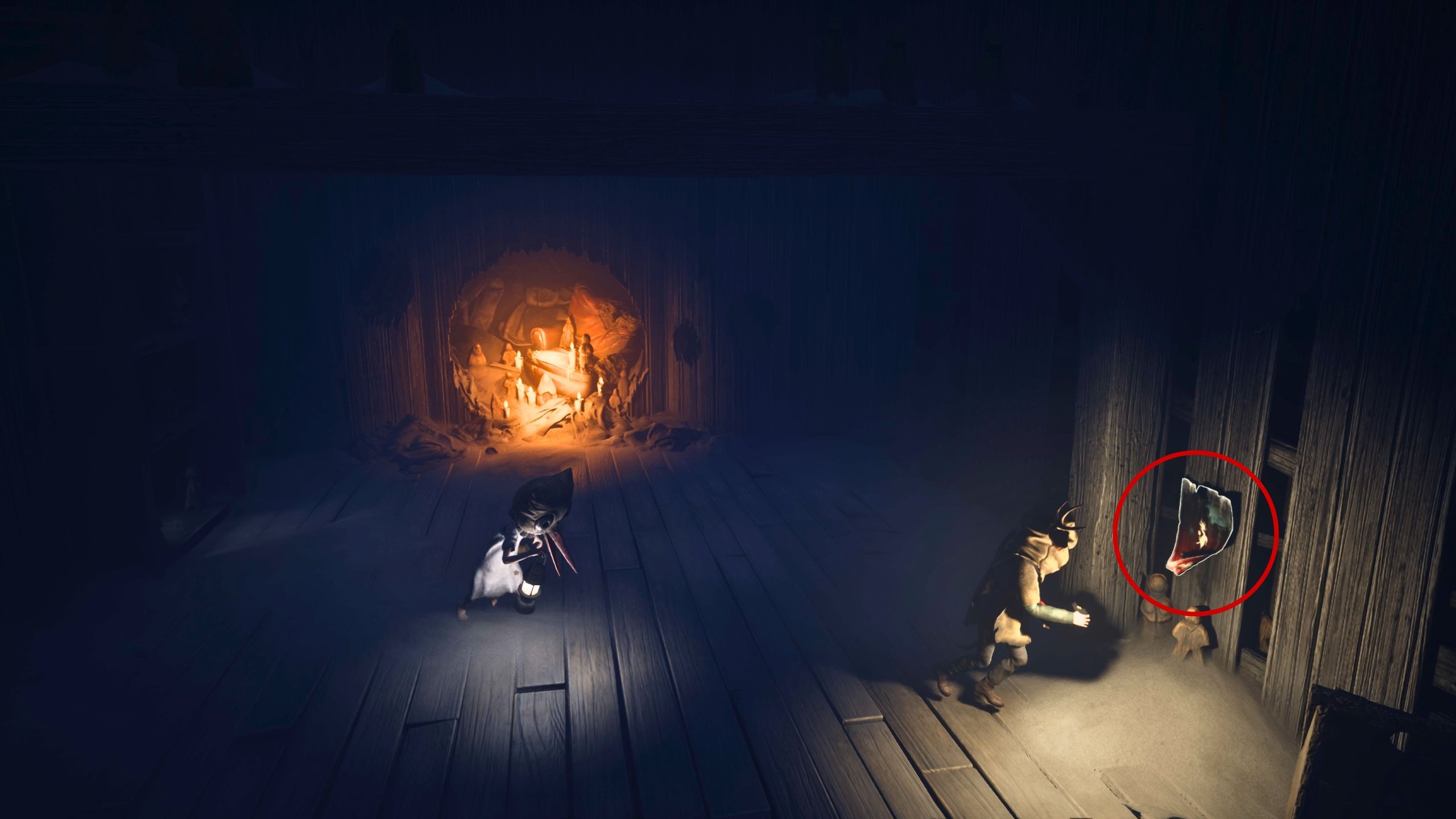 Once you’re inside the bunk bedroom, you’ll encounter and have to defeat a few pale children as you explore. If you head past the curtain on the right – where even more pale children will attack – you’ll find a poster on the back wall.