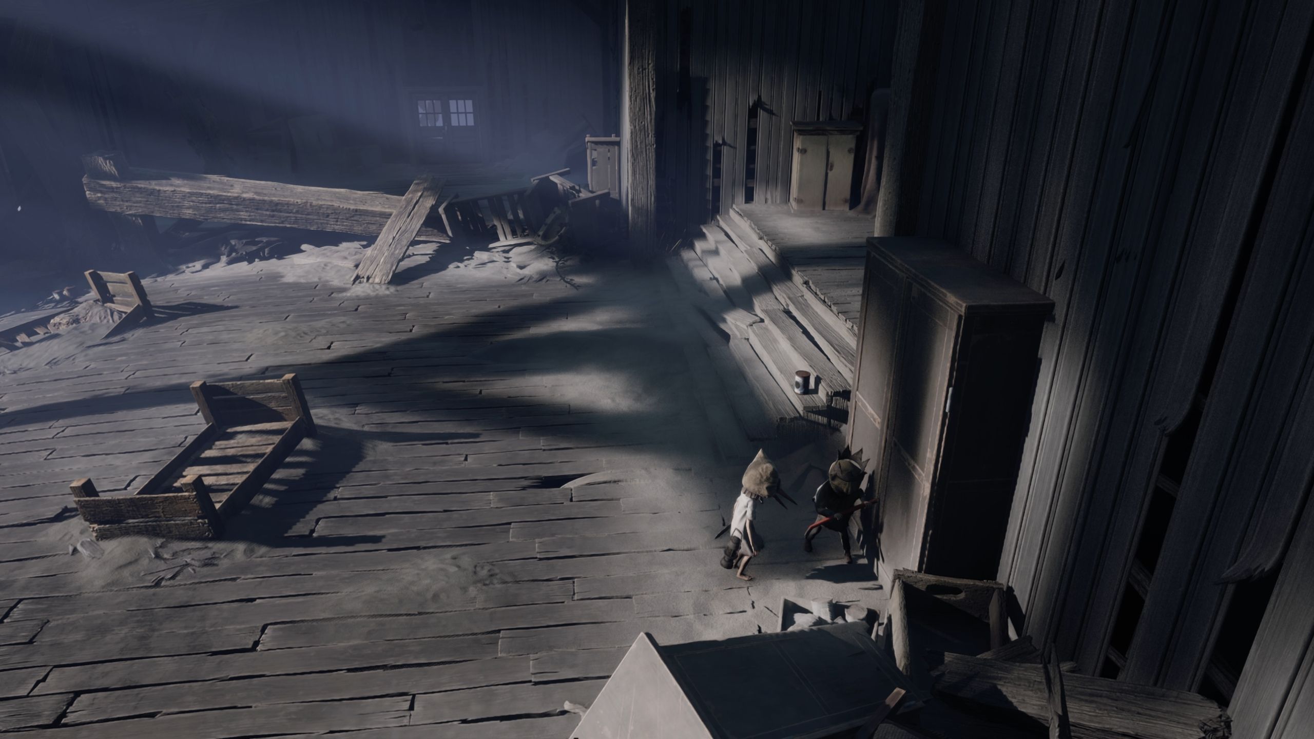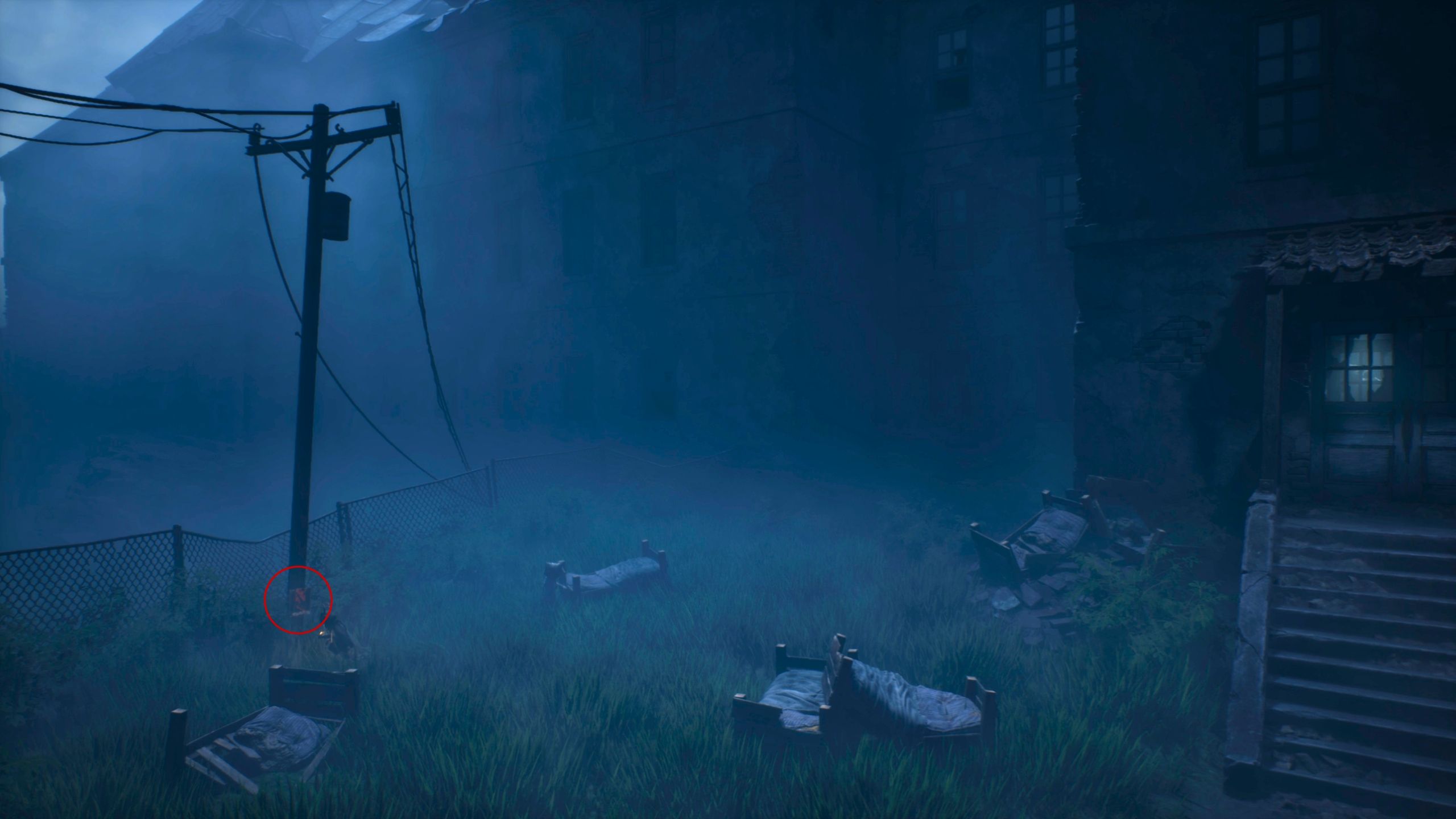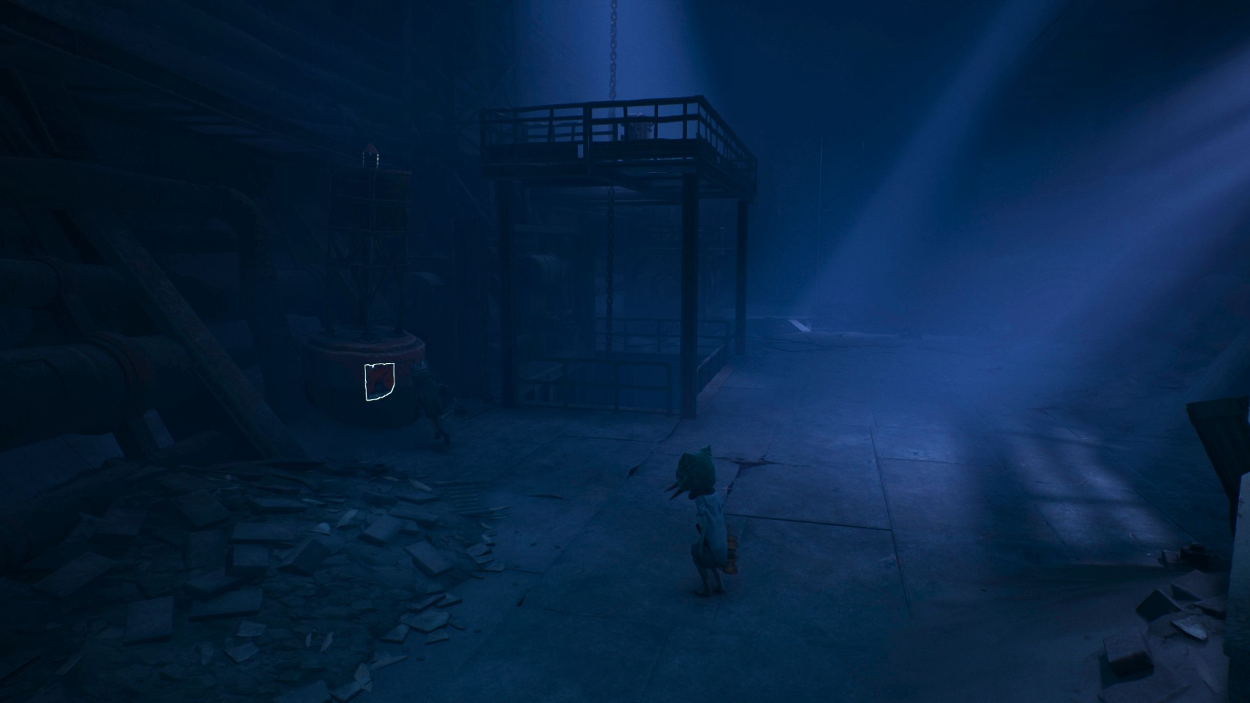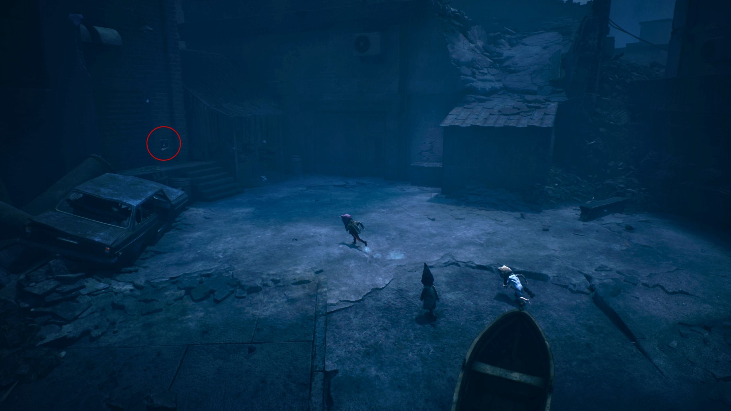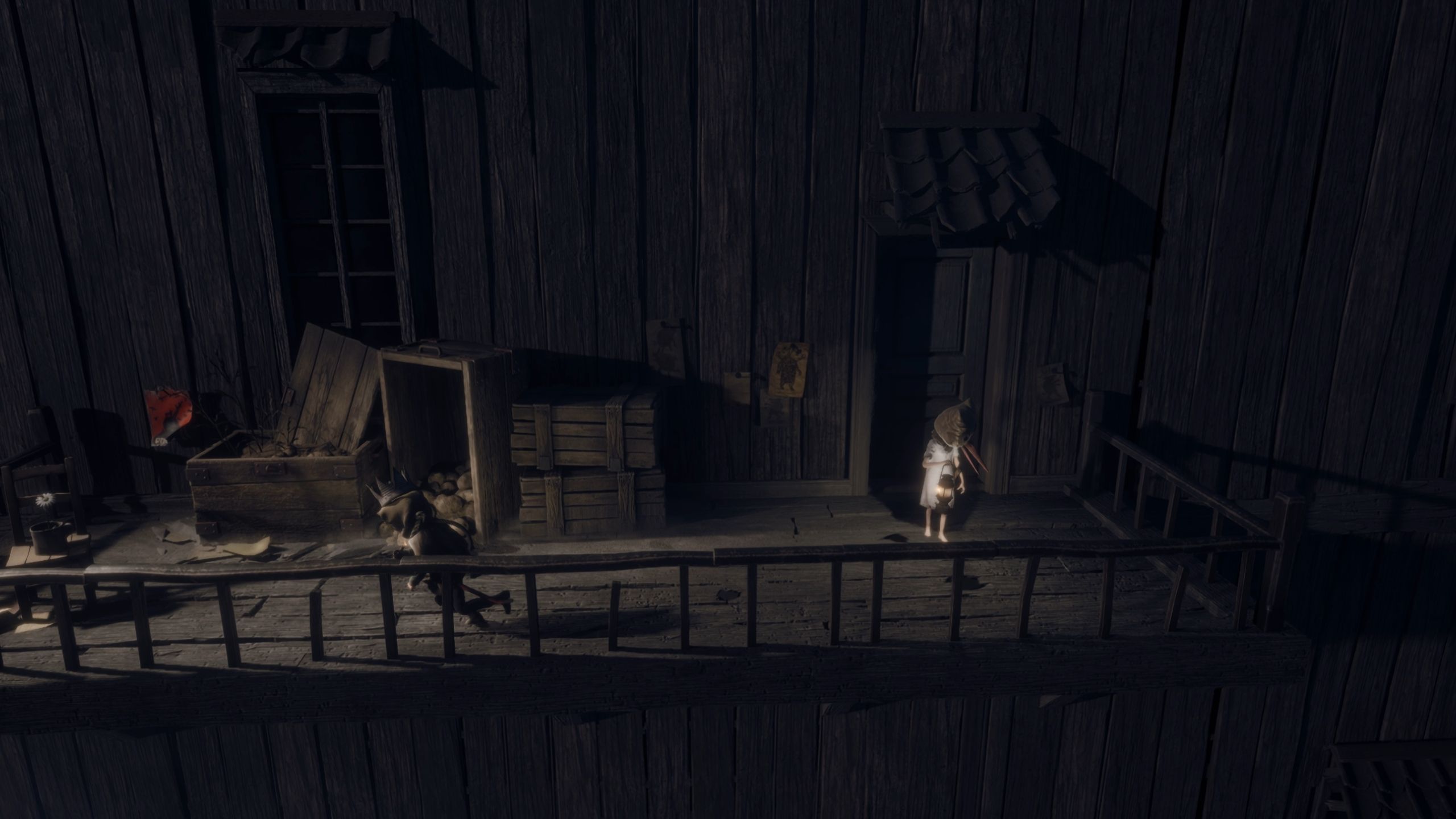 As you progress through the Mill area in the first chapter, you’ll reach an open space with train tracks and see the Sniffer moving around. Instead of immediately following the Sniffer, explore the ruined building on your right first.