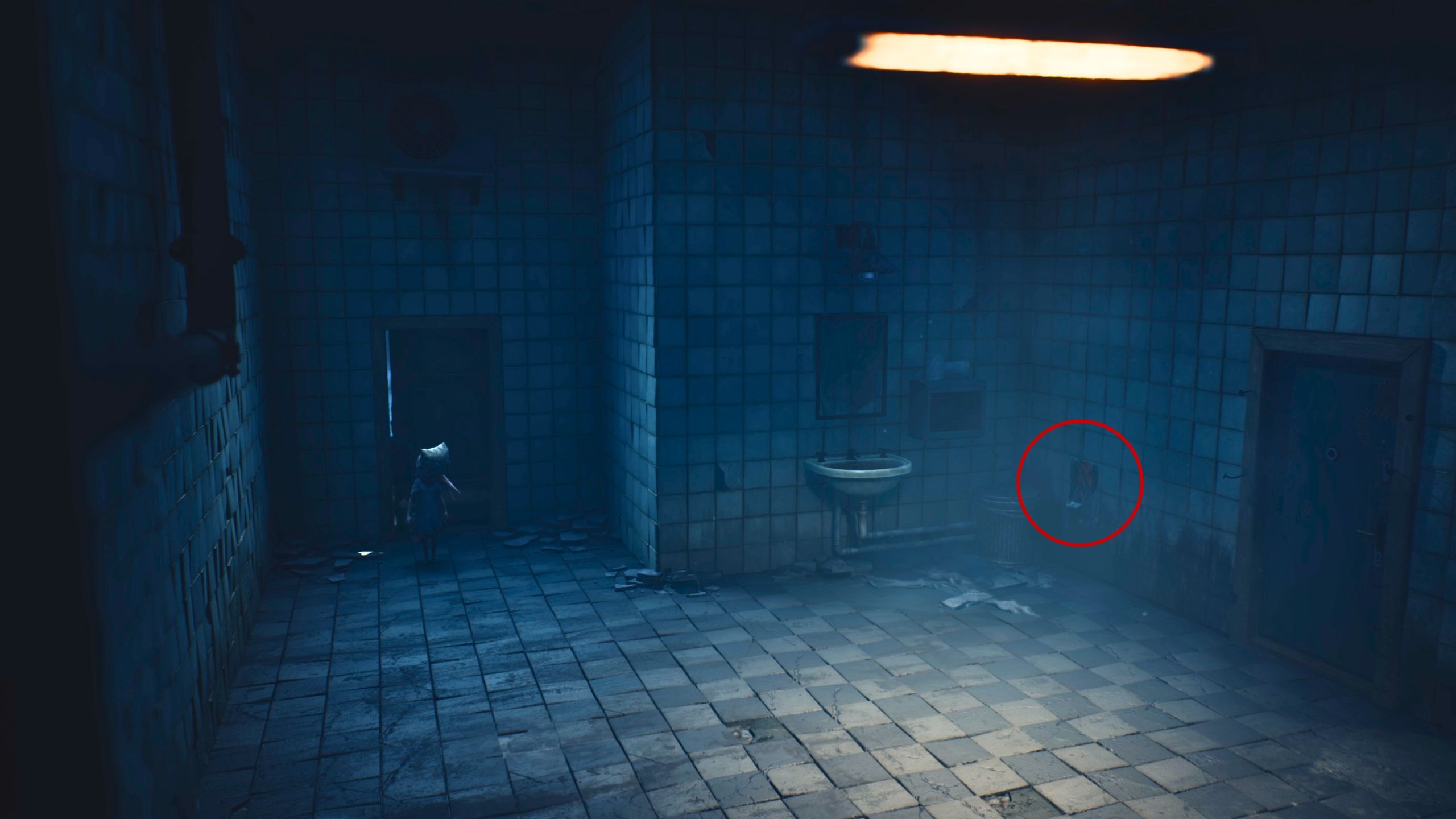 As players progress deeper into the train track area and near the railcar, they should go through the doorway on the right that’s lit by a light bulb.