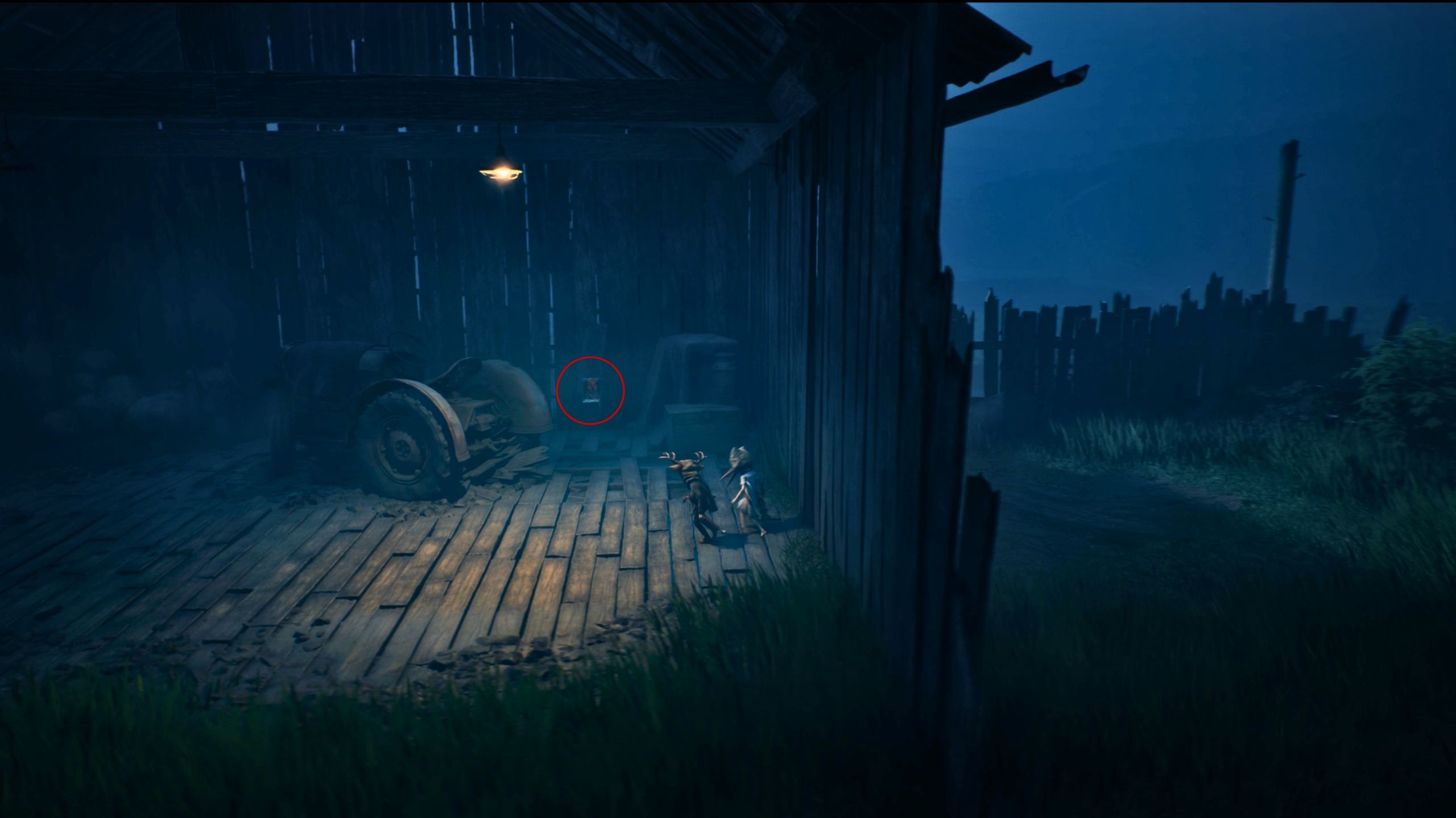 While following the giant pelican to the lighthouse, you’ll run through a barn. Look for a poster on the back wall, to the right of the tractor, as you squeeze through a hole in the side.