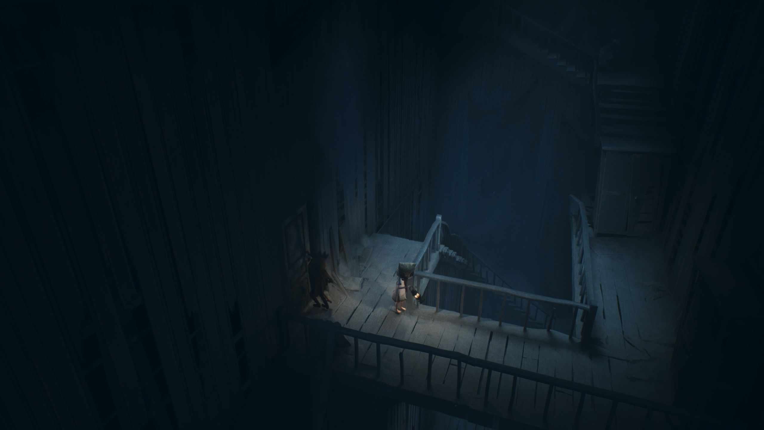 As you explore the new area, you’ll find a dimly lit hallway with a piano you can play. Go up the stairs, and when you reach the second floor, go through the door on your right to reach the balcony.