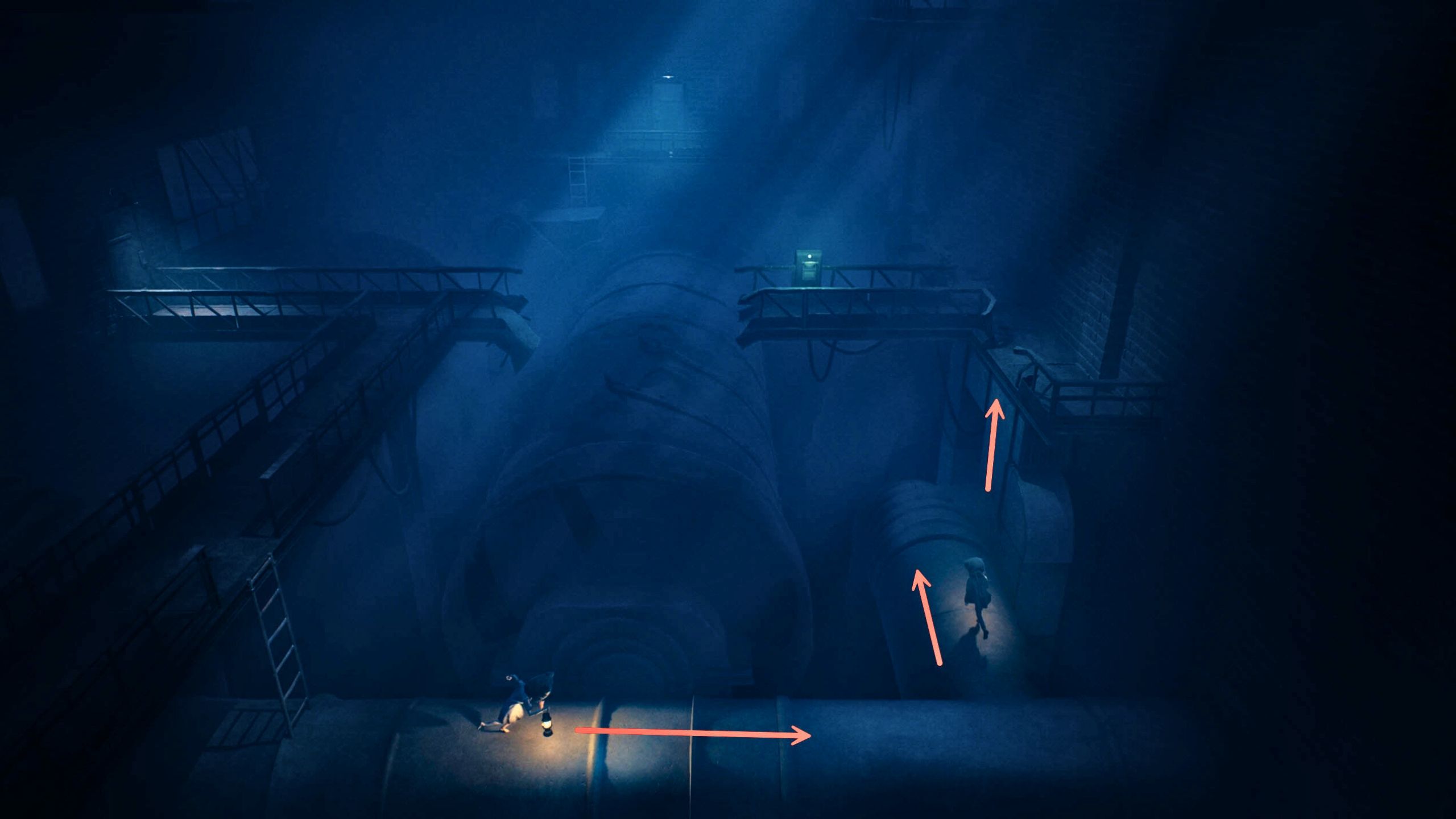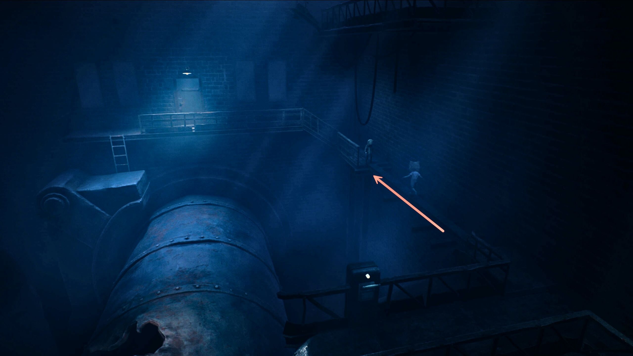 In the first chapter of REANIMAL, after crashing your boat on the beach, you’ll find yourself inside an old, run-down Mill (Factory). It’s a gloomy place with rusty walkways and dangerous drops. Early on, you’ll face a puzzle in the Boiler room where you need to get a cylindrical boiler spinning – and use the hole in it as a pathway to continue your journey.