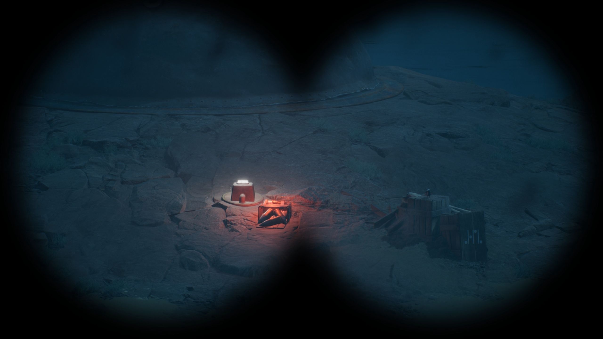Head back to the bunker and use binoculars to find a code with dots on Cannon Island. This is the first code you’ll need to input into the machine. Then, press the buttons to match the lights to the code – bottom, middle, top, bottom – to request a box of shells. You’ll need these shells to continue with the chapter.