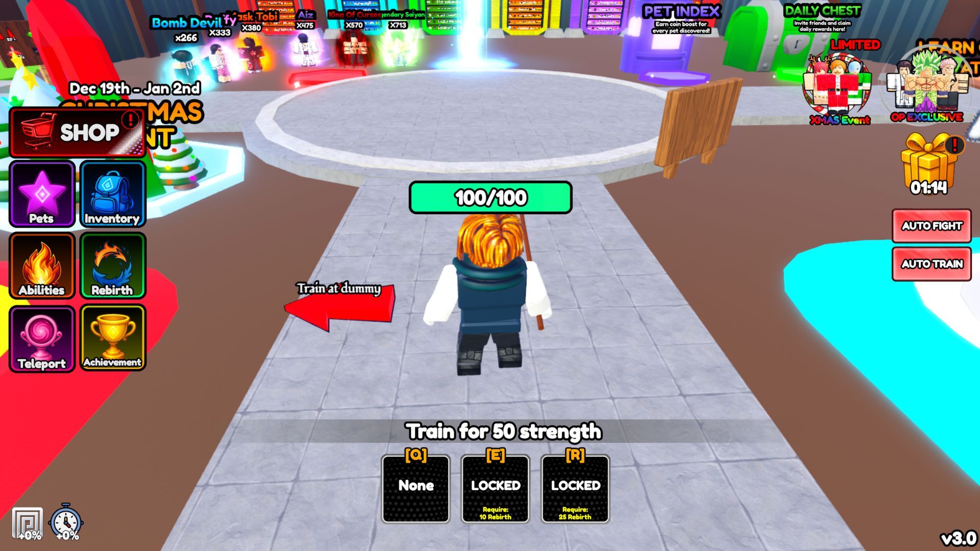 - XmasEvent – Gives you x200 Gingerbreads, x2 Coins Potions, x2 Luck Potions, and x2 Strength Potions.