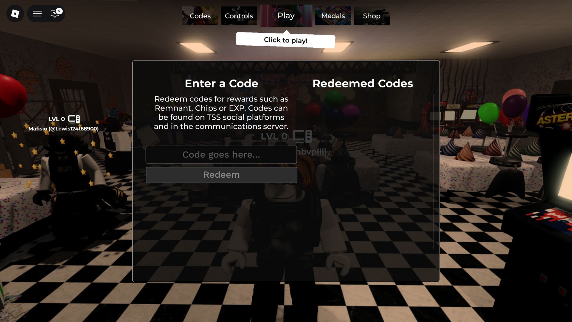 - In the game lobby, click the Codes button. You can see it at the top of your screen.