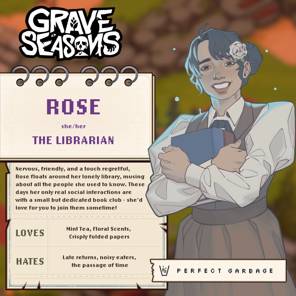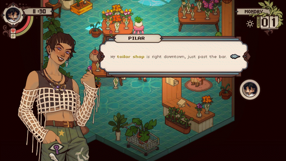 Pilar is more than just a tailor – she’s friendly and enjoys meeting new people. She’s creative, loves nature, and is known for being playful and easygoing. However, she keeps to herself and doesn’t seem to form deep connections with others, appearing to be hiding something. That all changes when the main character from Grave Seasons arrives.