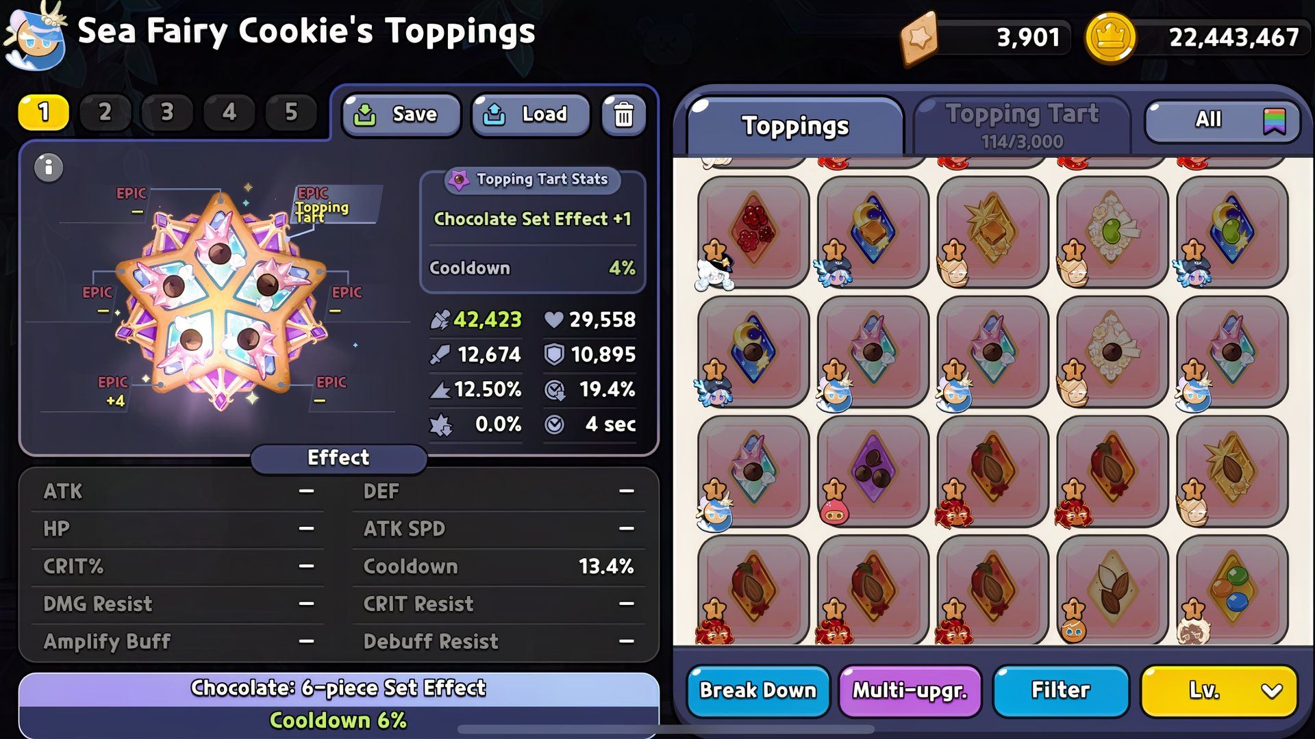 Sea Fairy Cookie’s powerful ability has a 15-second cooldown, which can slow down her attacks. If your team is already strong, the best way to improve her performance is to focus on reducing that cooldown using Sea Salt Swift Chocolates.