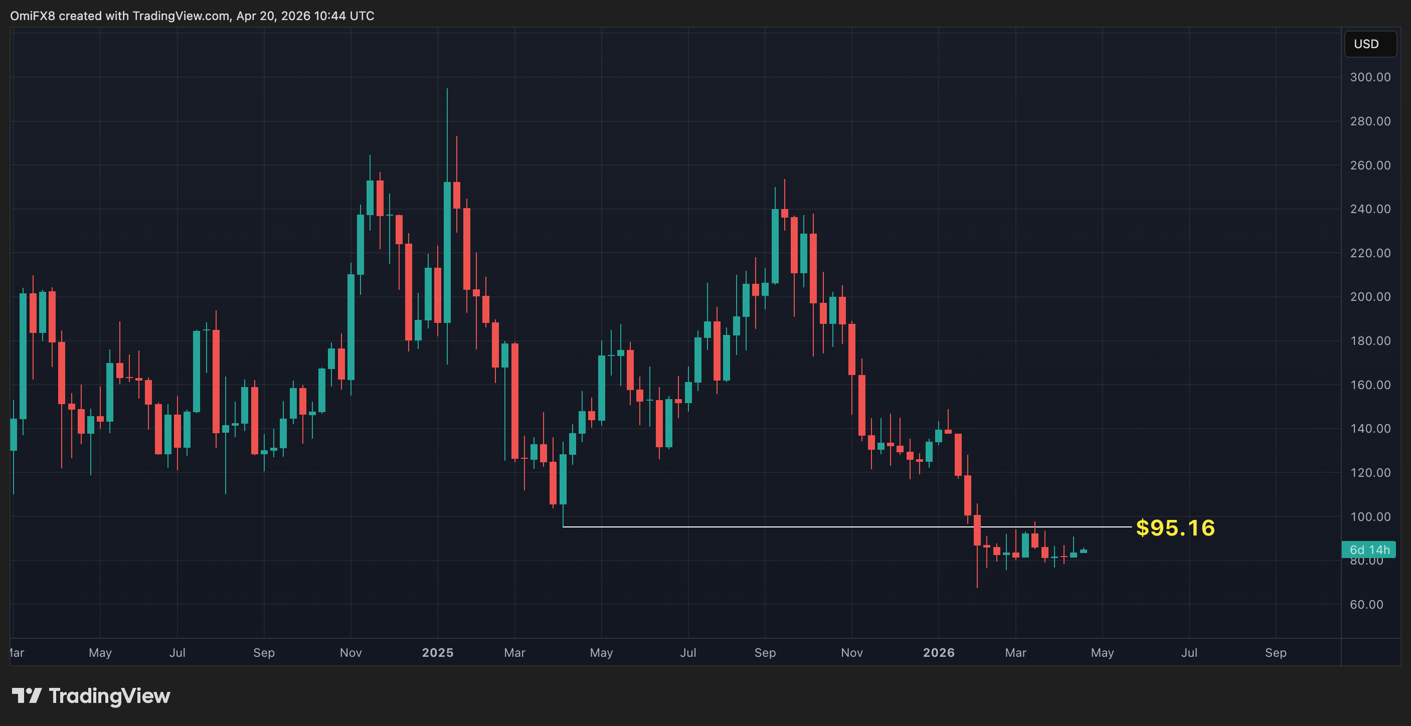 One level stands out like a sore thumb: $95.16, the low recorded in April. How quaint.