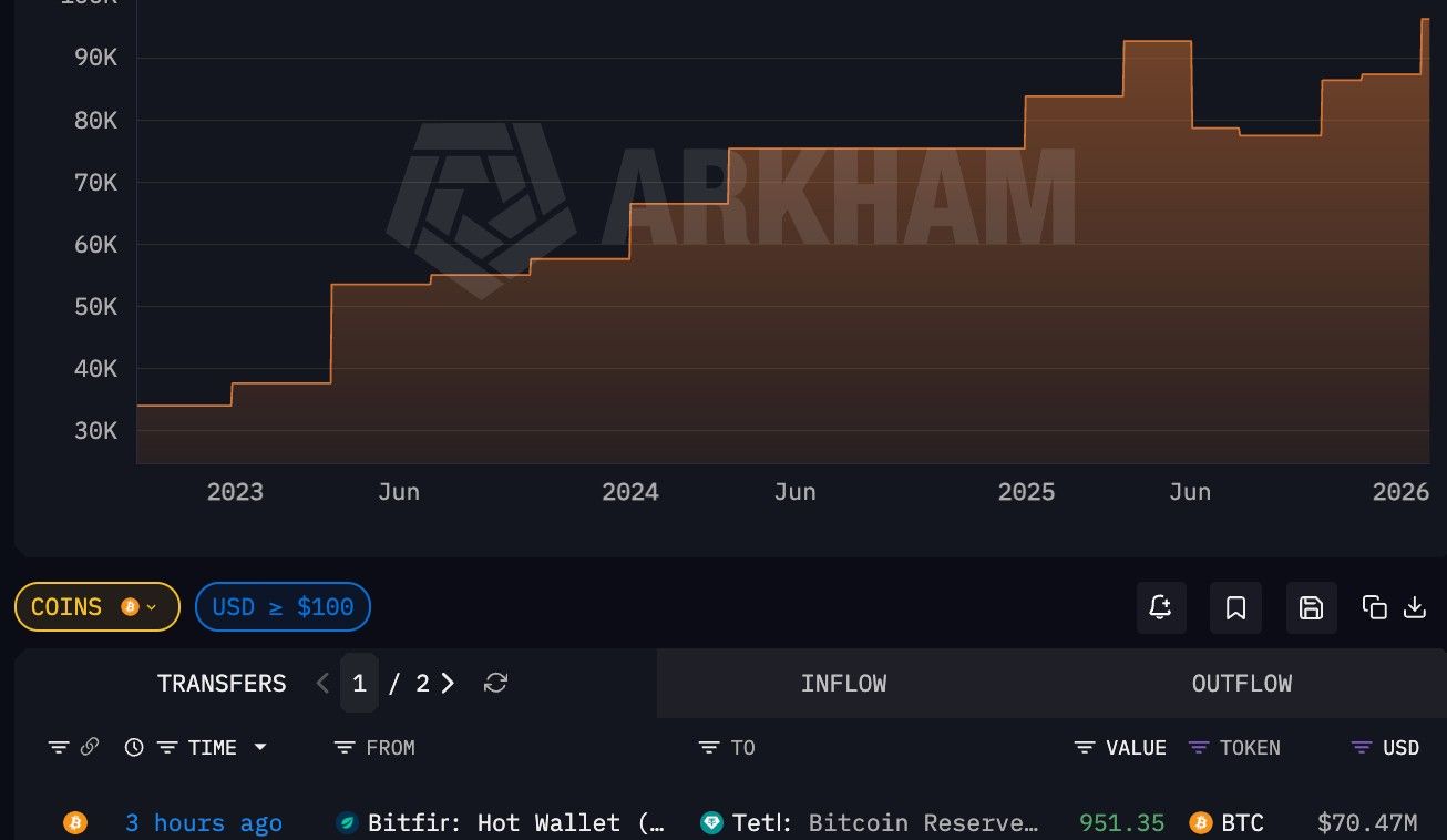 Blockchain detectives at Arkham Intelligence noticed a snazzy transfer of 951 BTC on Wednesday, moving from Bitfinex to a wallet charmingly labeled “Tether: BTC Reserve.” It seems this address has been confirmed as the magical destination for the company’s previous treasure hunts by CEO Paolo Ardoino himself.