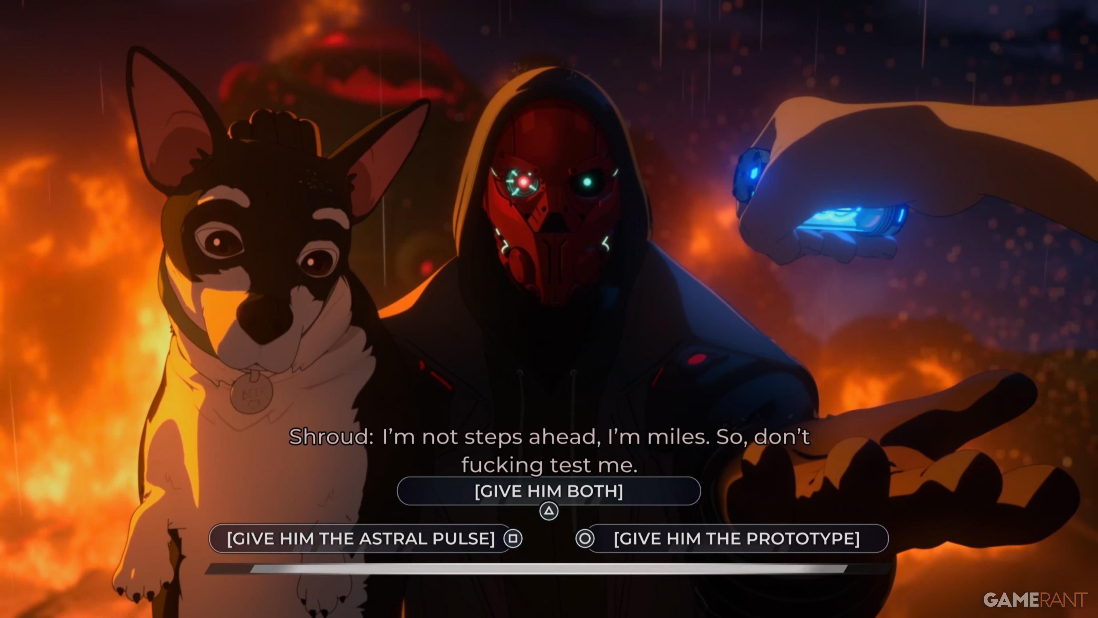 Towards the end of the last episode of Dispatch, players face Shroud in a tough battle inside his spider-like mech. After defeating him, while Shroud is on the roof, he asks Robert for the Astral Pulse, giving players several choices. This guide details all the different outcomes you’ll get depending on whether you give him the Prototype, the Astral Pulse, or both, helping players understand the consequences of each decision in Dispatch.