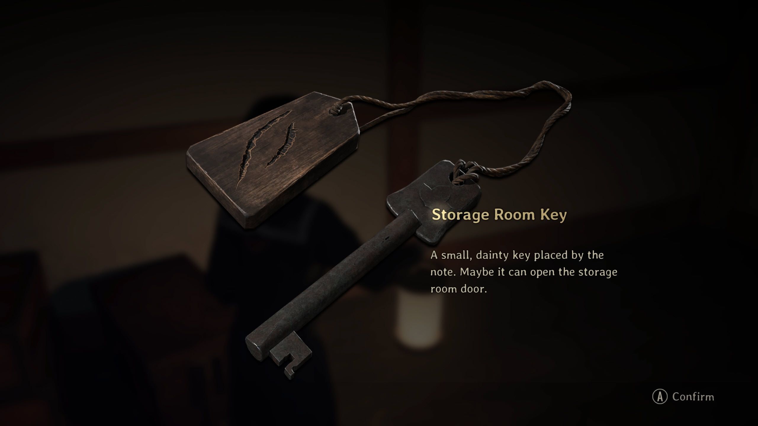 Use the Storage Room key to get inside, then go to the back. You’ll find a wooden chest with a doll on top – examine it to read a message. Be sure to also grab the “A Warning” note while you’re there.