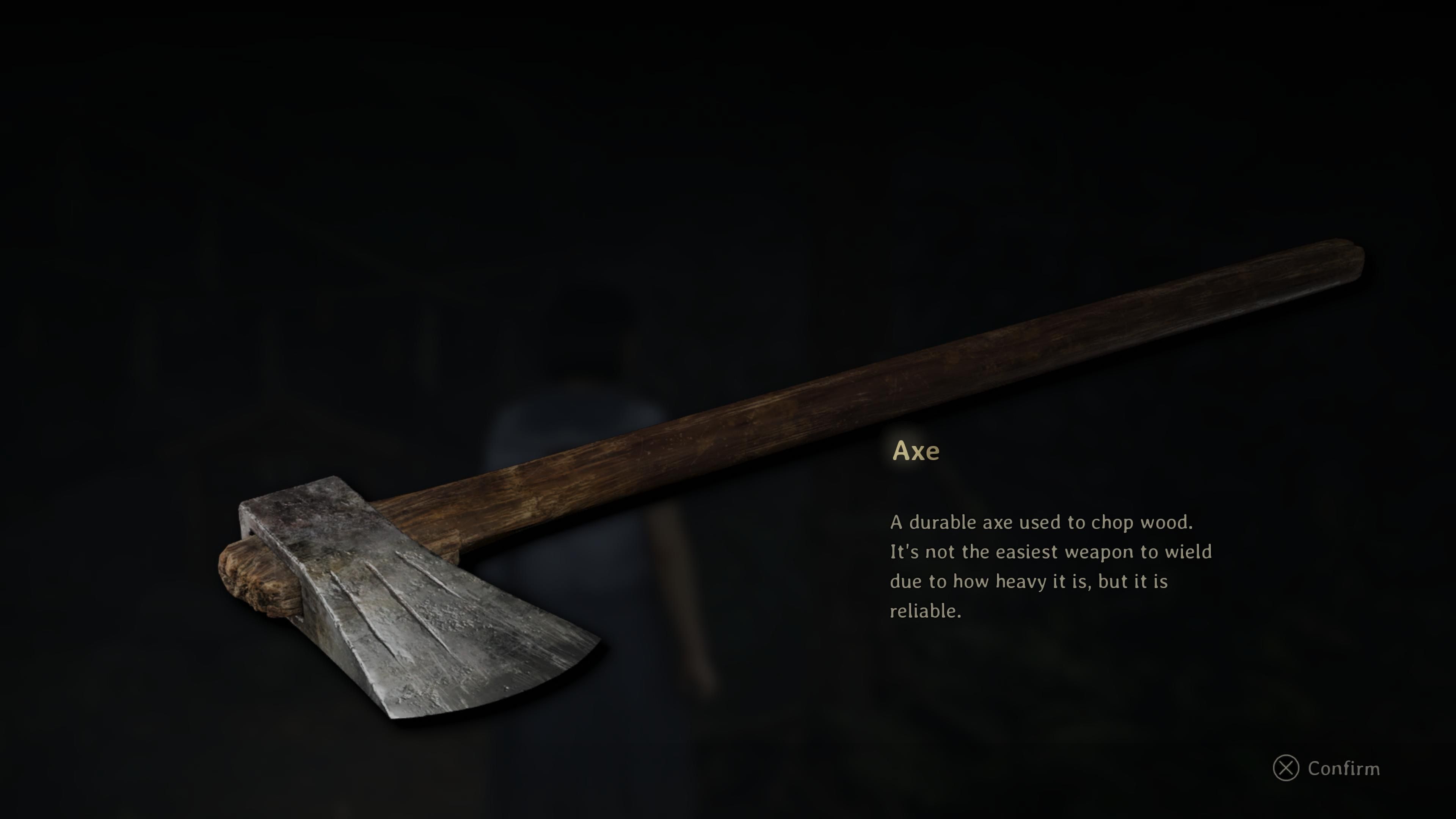 Among the heavy weapons in the game, the Axe is the strongest. Players first find it on the Mountain Trail, while traveling to Shu’s House. It functions identically to the Sledgehammer, but is slightly lighter.