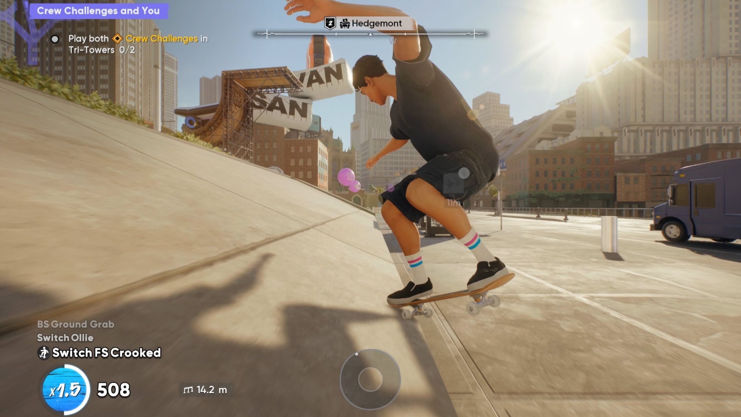 Okay, so to nail this trick, you really have to hold that Crooked position with the sticks the whole time you’re grinding. But here’s a cool tip: even if you don’t quite get Crooked right when you first hit the rail, you can actually adjust your joystick while you’re grinding to still pull it off! It’s awesome because it gives you a second chance to get the trick right.