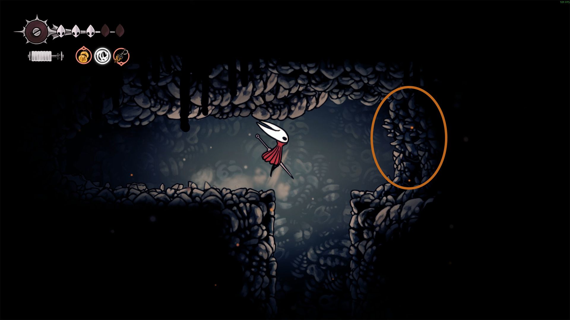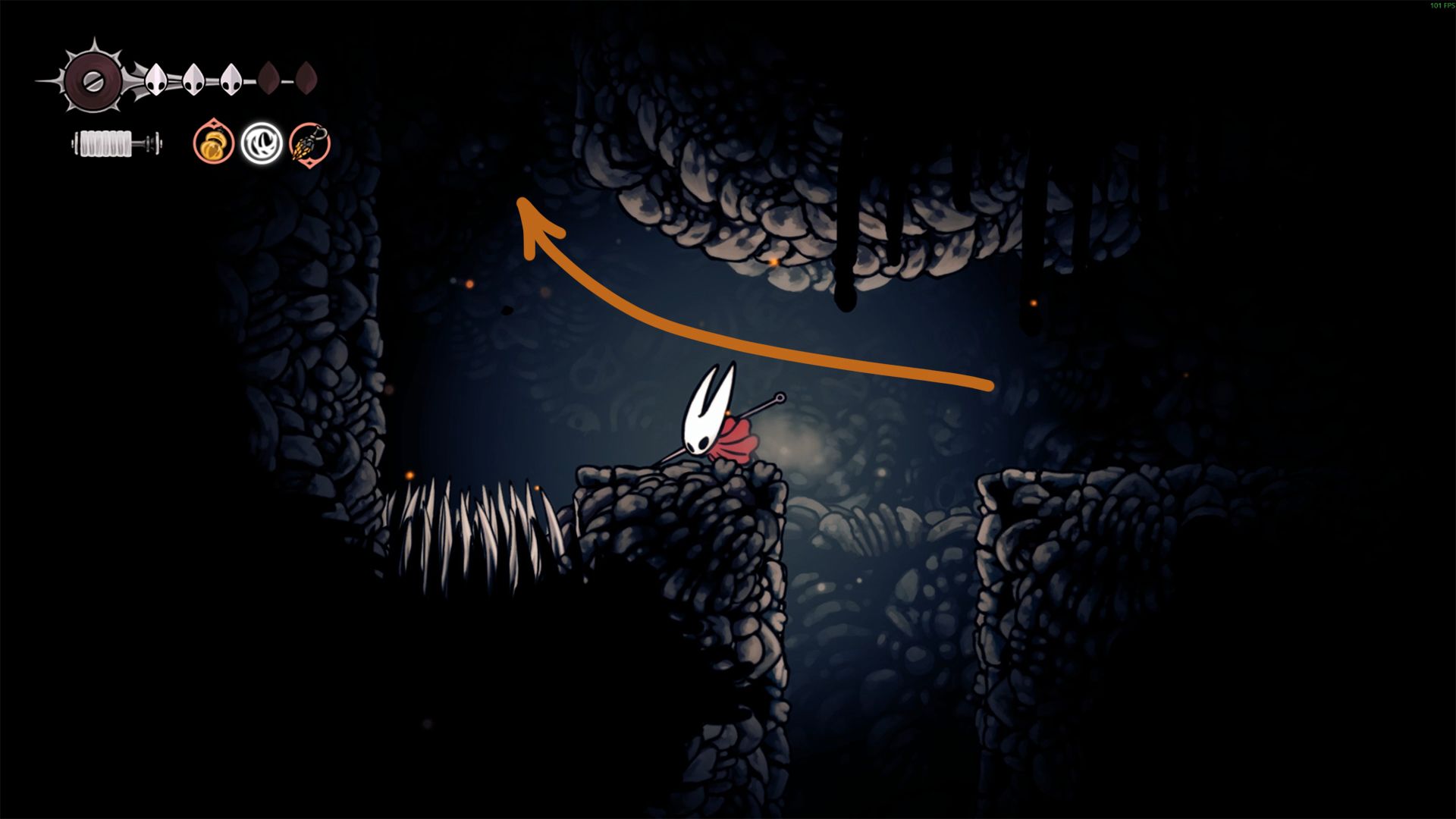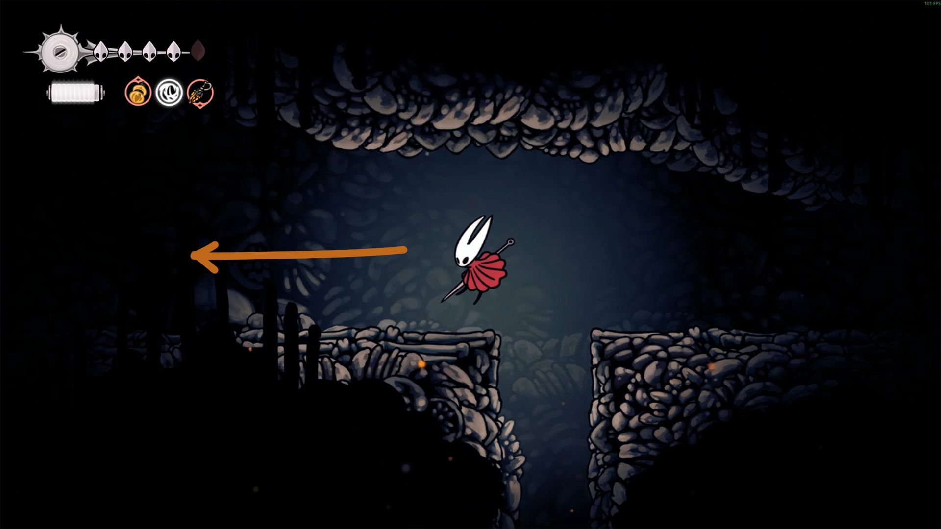 After Hornet enters the concealed location, continue moving to your left. Along the way, you’ll encounter a few adversaries; make sure to vanquish them. Navigate through the hurdles as you go, and keep heading left continuously.