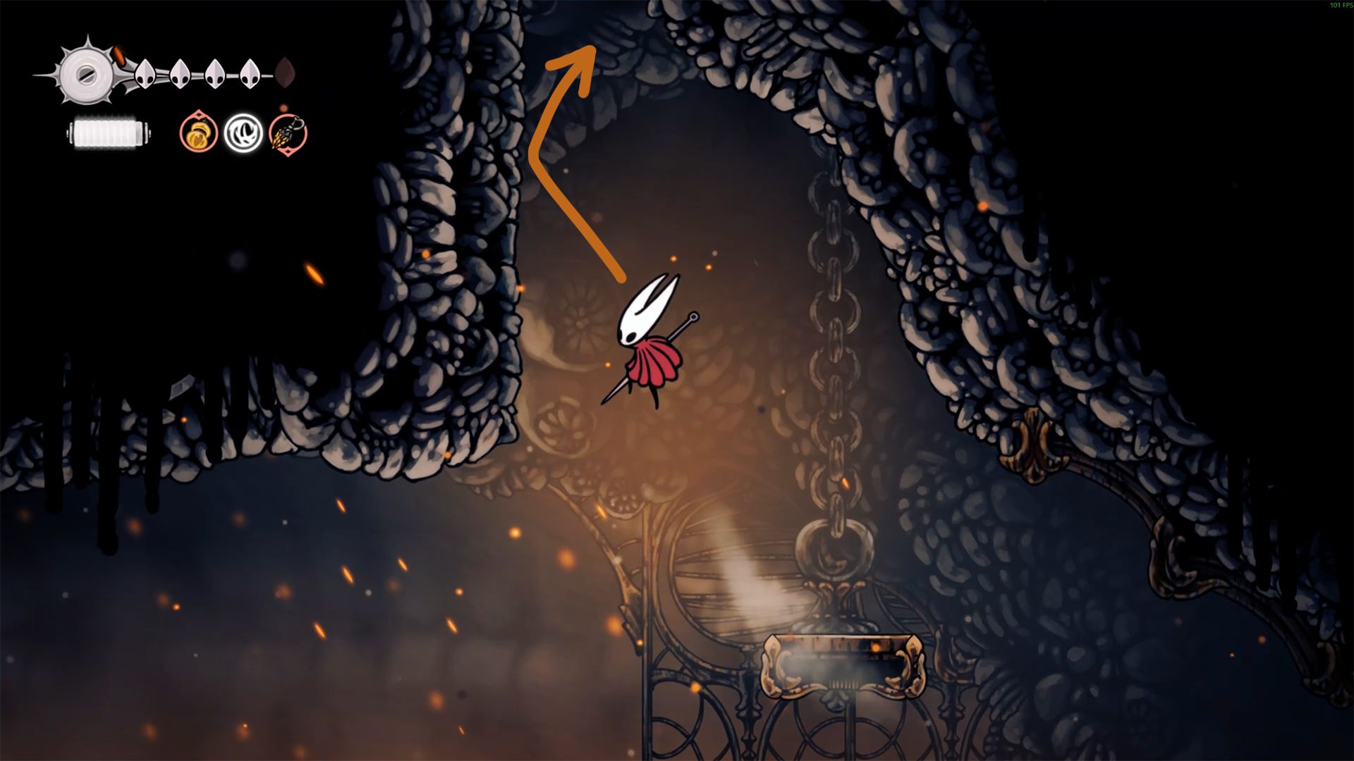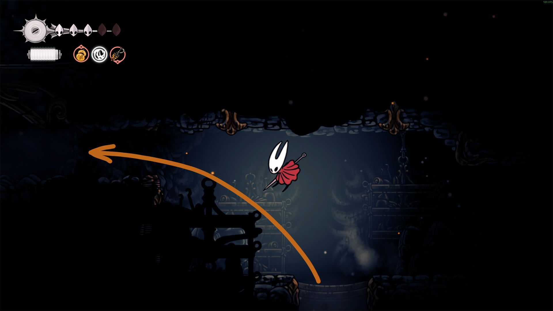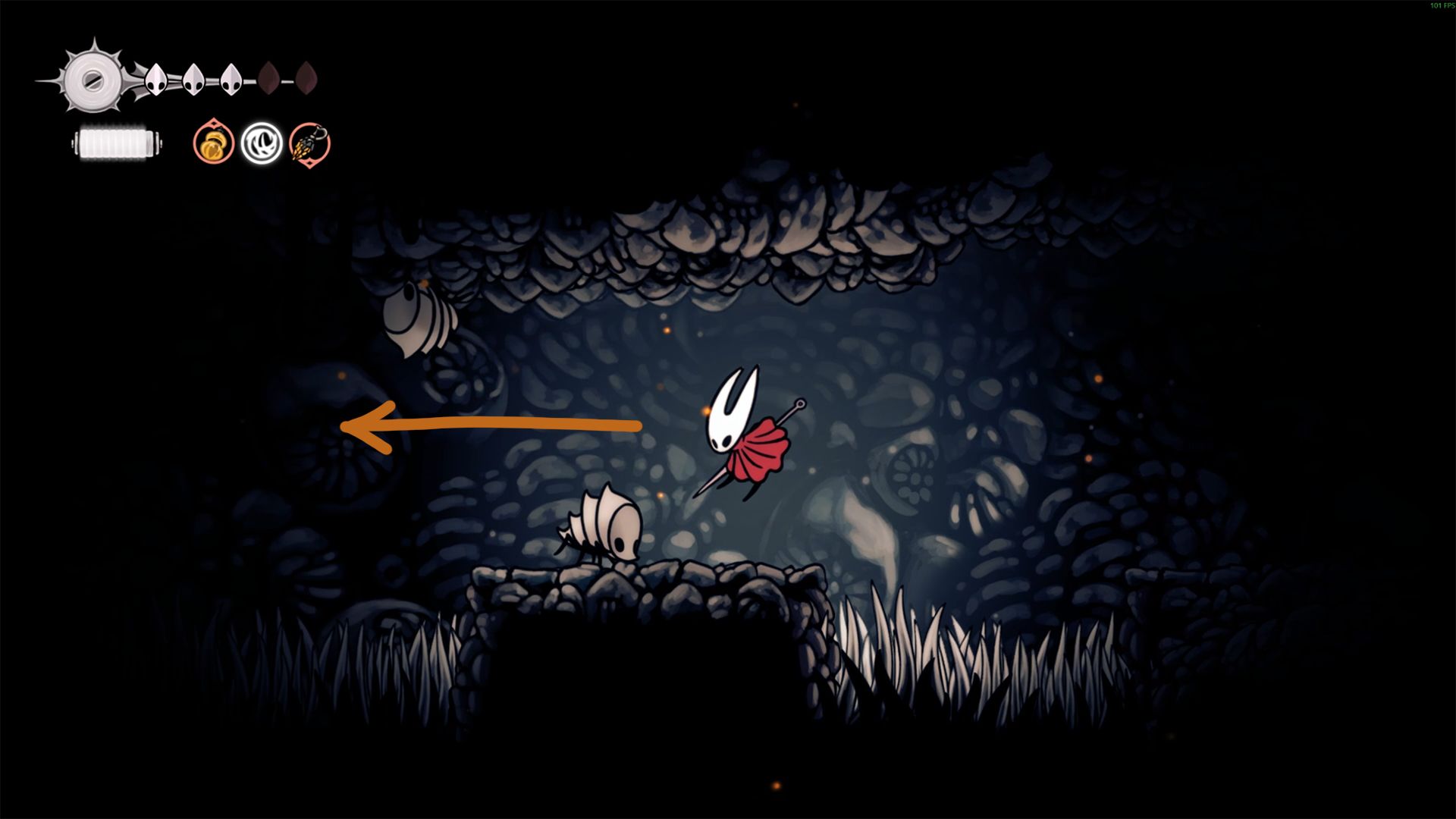 After Hornet enters the concealed location, continue moving to your left. Along the way, you’ll encounter a few adversaries; make sure to vanquish them. Navigate through the hurdles as you go, and keep heading left continuously.