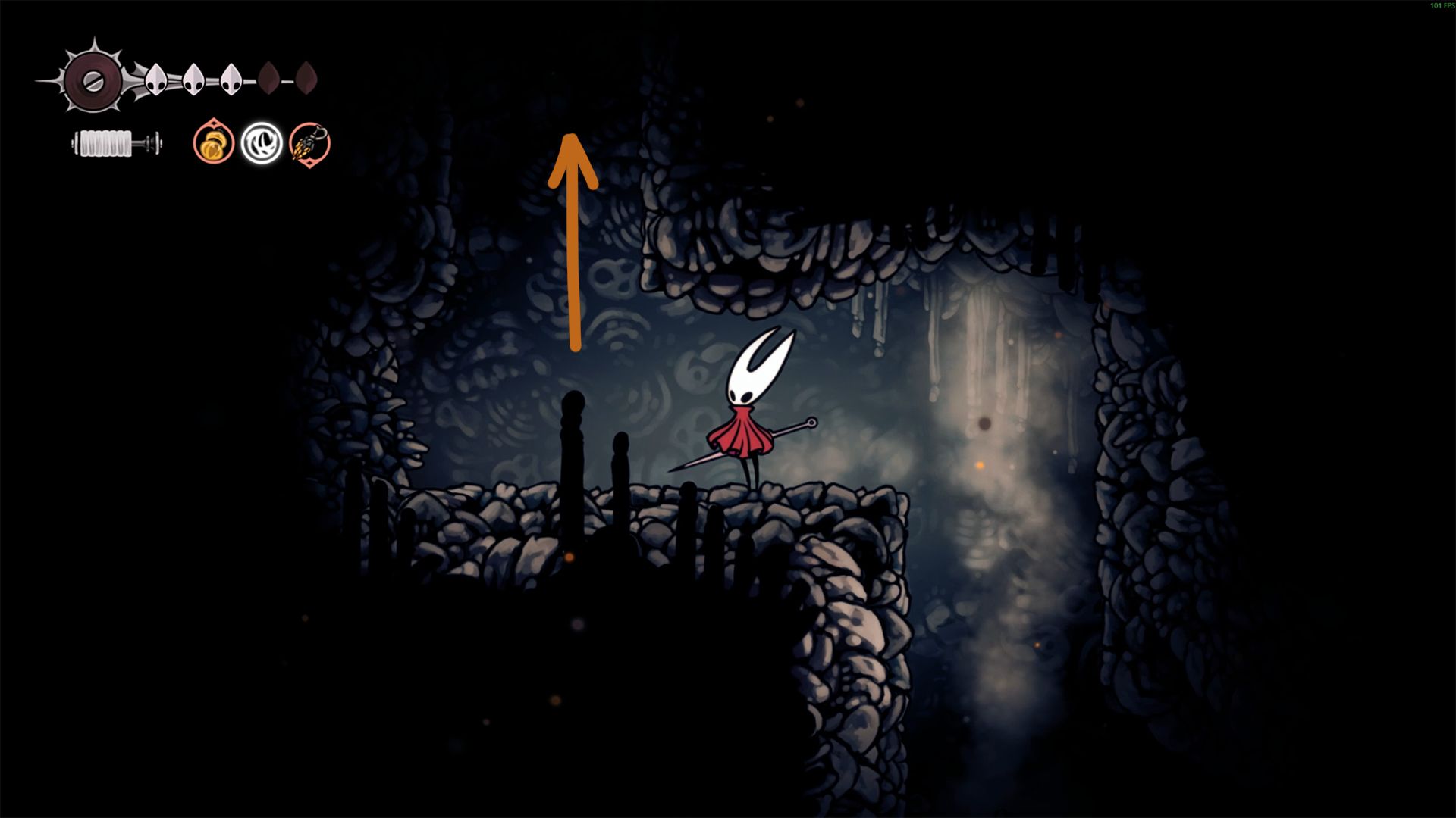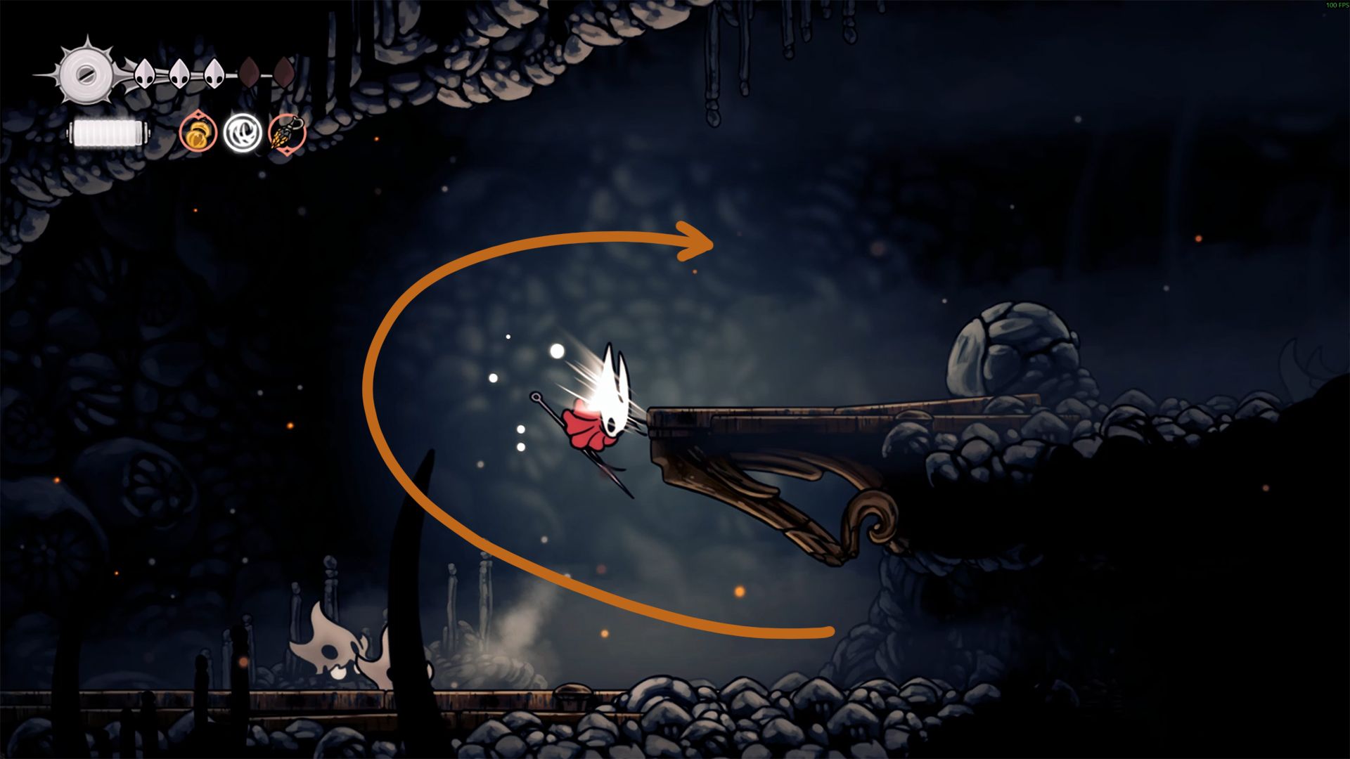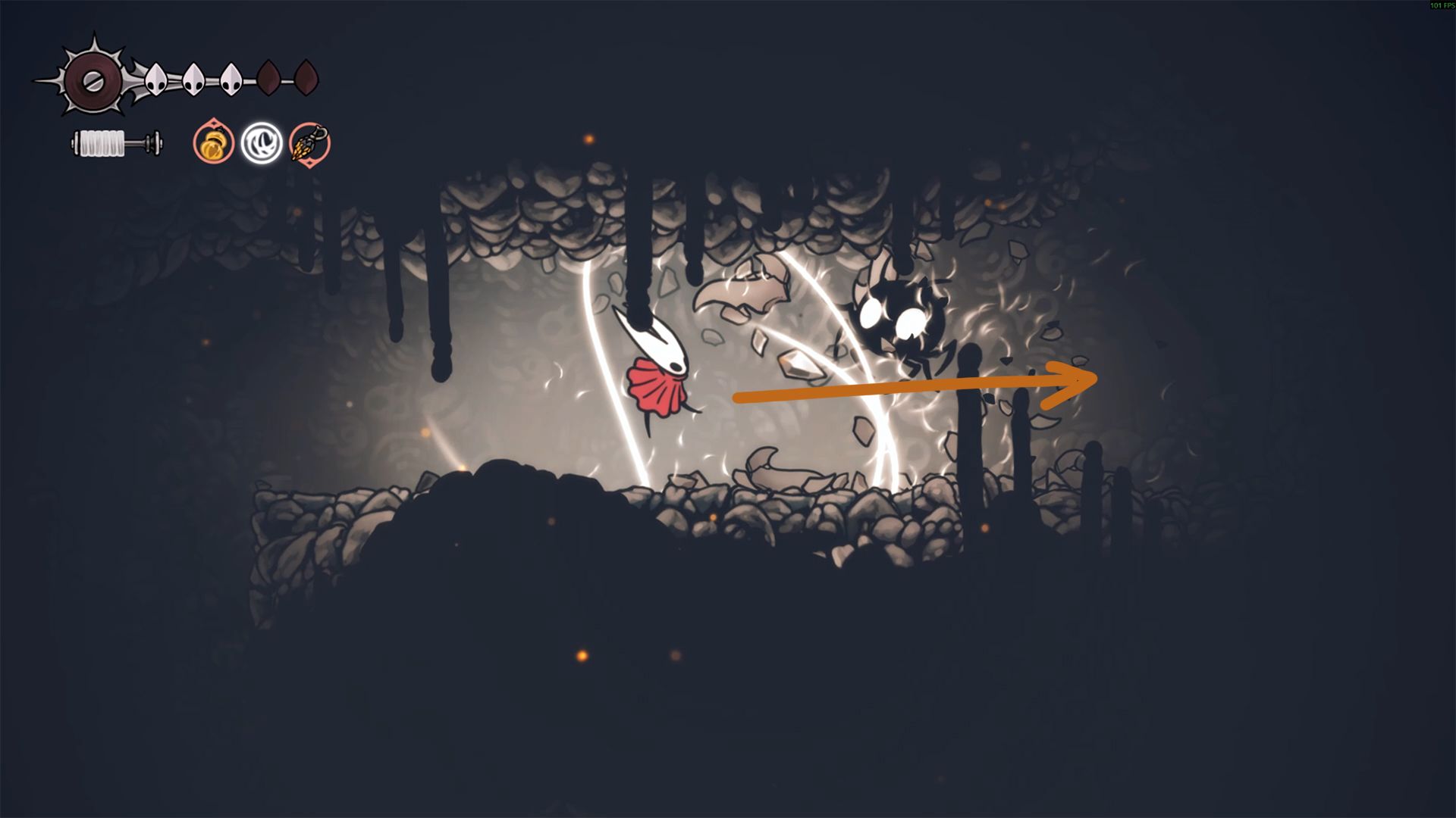 After Hornet enters the concealed location, continue moving to your left. Along the way, you’ll encounter a few adversaries; make sure to vanquish them. Navigate through the hurdles as you go, and keep heading left continuously.