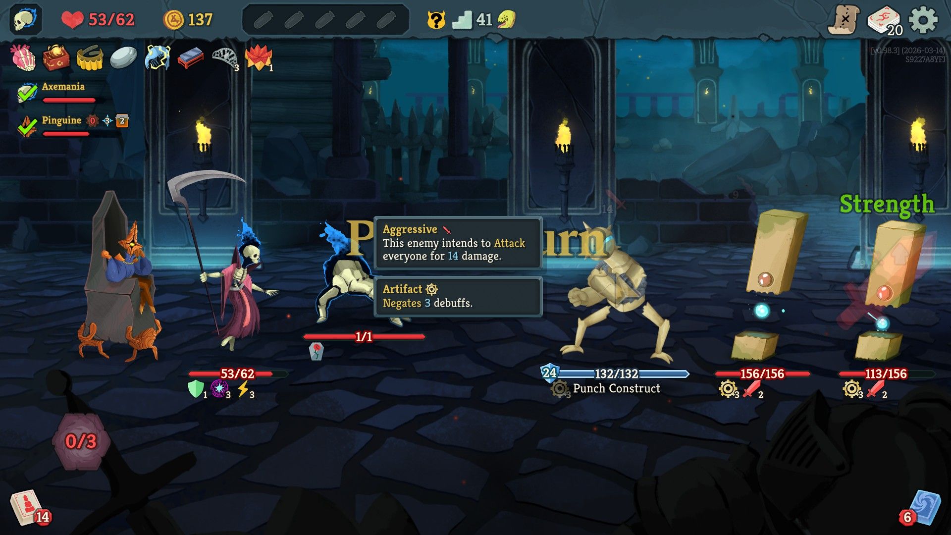 - Reworked Pendulum relic: “Common – Whenever you shuffle your Draw Pile, draw a card.” -> “Common – Every 3 turns, draw 1 card.”