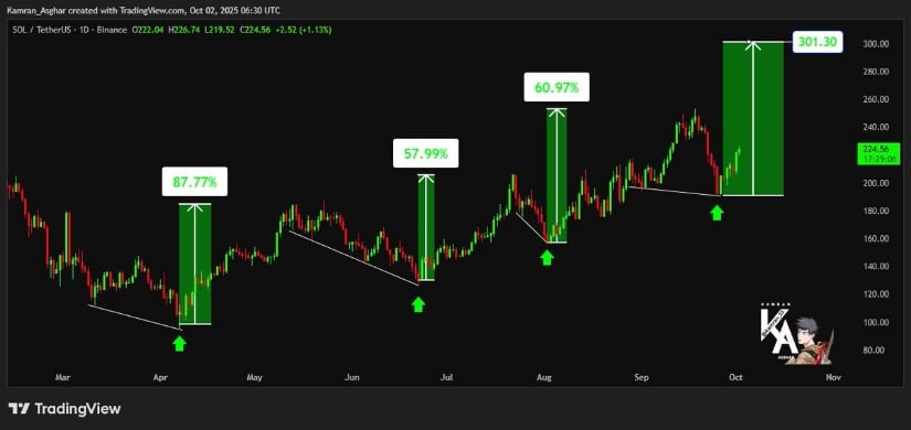 Kamran Asghar, ever the analyst, affirms that this “playbook” of consolidation followed by a burst of excitement is one that has been repeated with such precision, it might just be choreographed by the stars themselves. If the pattern holds, we could see Solana’s price soar past $300 with all the grace and elegance of a well-executed pirouette.