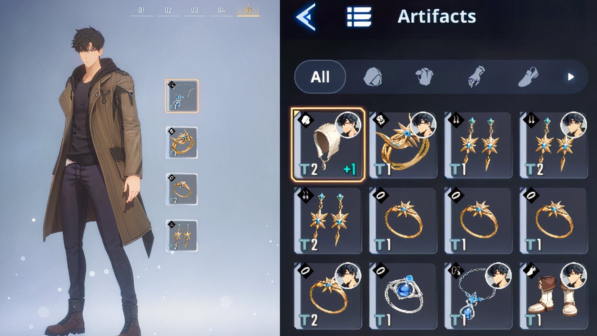 Artifacts boost Sung Jinwoo’s core stats. Focus on finding ones that increase his Attack, Defense, and HP – these will be the most useful in battles and essential for progressing through harder levels in the story and on the world map. You’ll get these artifacts by defeating enemies, bosses, and overcoming challenges within dungeons, and also by completing story chapters.