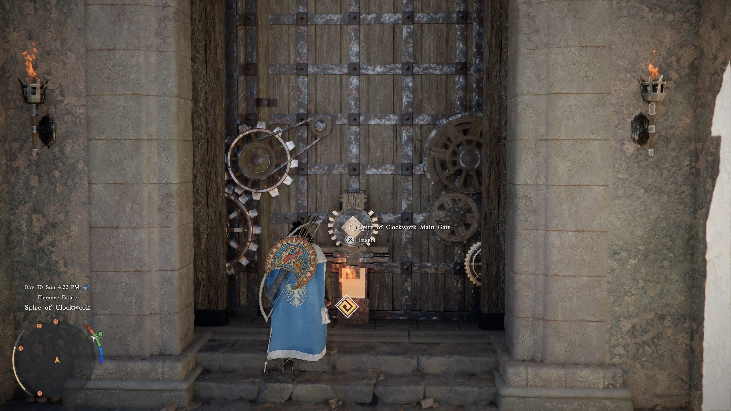 Now that you’ve gotten the key, make your way to the Spire of Clockwork, east of Demeniss City in the Crimson Desert. Because your inventory is shared between all your characters, you can use the key Damiane obtained to unlock the door to the Clockwork Spire.