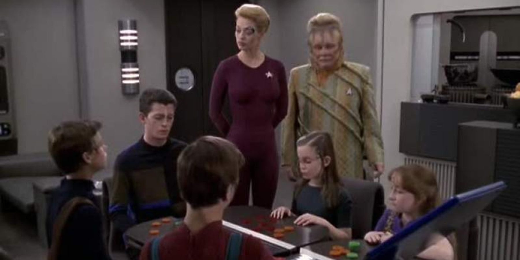 In the sixth season of Star Trek: Voyager, the crew saves four children from a Borg collective and Seven takes on a protective role towards them. In this particular episode, Seven, along with the children, participates in some leisurely activities alongside Naomi Wildman and Neelix. Given Seven’s methodical nature, these activities are structured and purposeful. There is no room for casual conversation; it’s all about enjoying the moment.