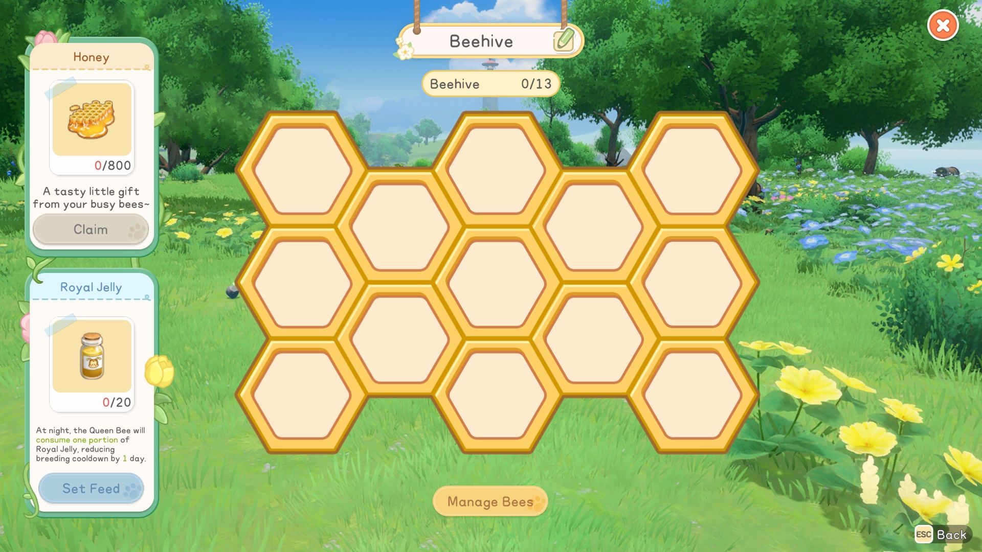 You can change the name of your Beehive by clicking on the title at the top of the screen, or by pressing the left bumper button (LSB) if you’re playing with an Xbox controller.