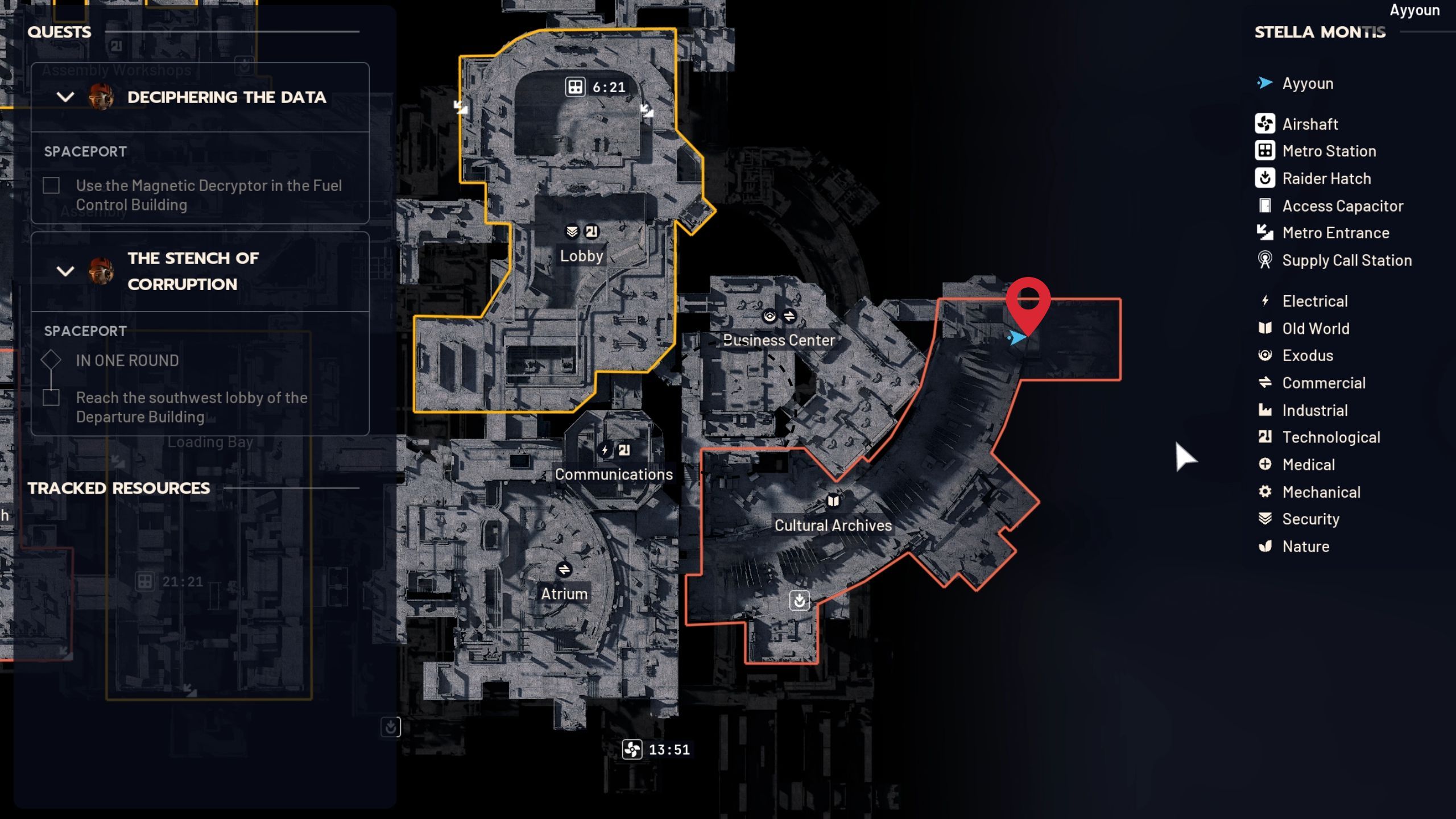 Stella Montis On Stella Montis, you can easily find a lot of suitcases and trash cans in the main Lobby and the Business Center areas. There’s also a room inside the Lobby Metro station, just opposite the button to call extraction. It has several metal drawers that you can open up to find the Stella Montis Archives key.