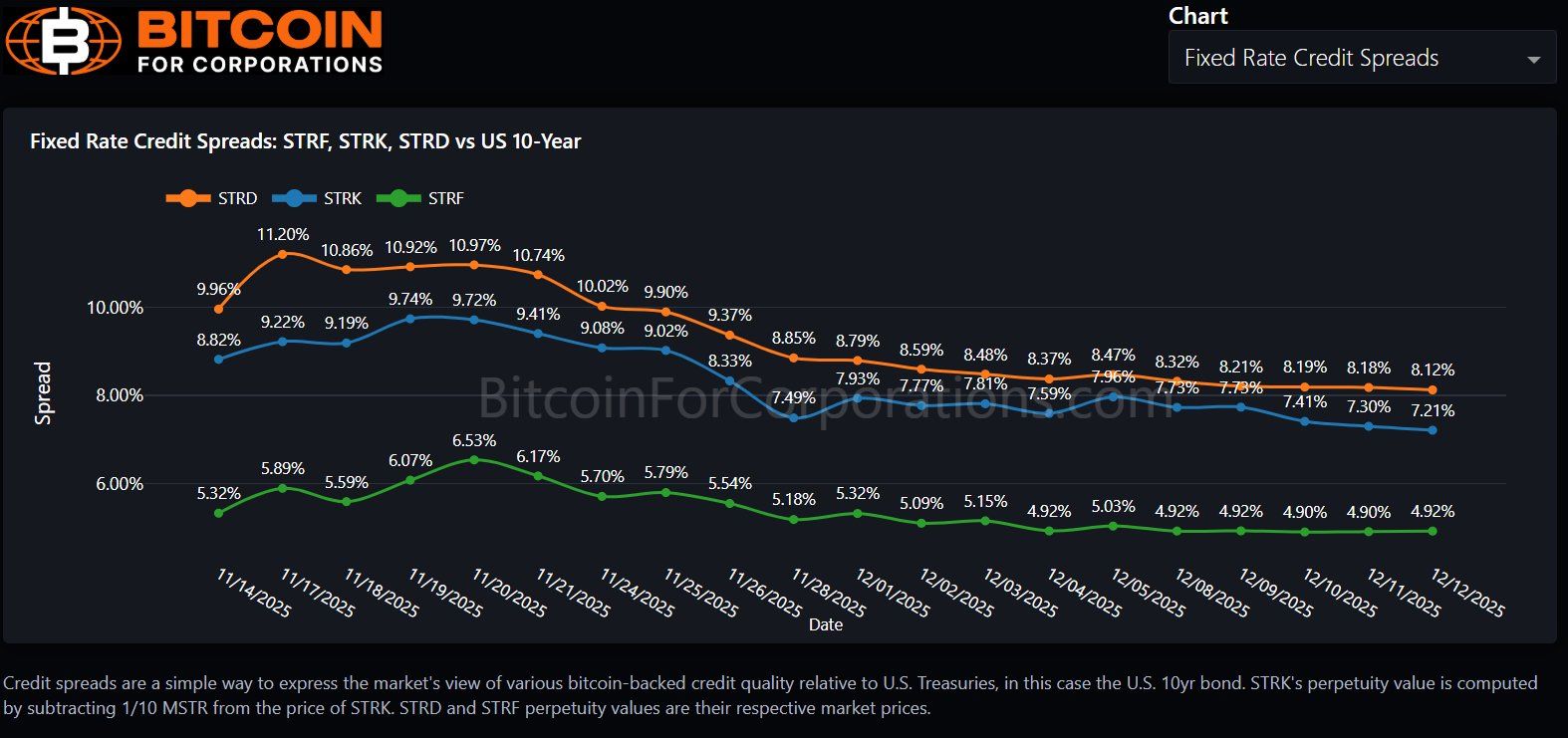 The yield spread between STRD and the U.S. 10-Year Treasury Note dropped to a new low of 8.12% (as of Dec. 12)-but hold onto your hats, because it widened back to almost 9% as Bitcoin nosedived below $86,000! 🎢