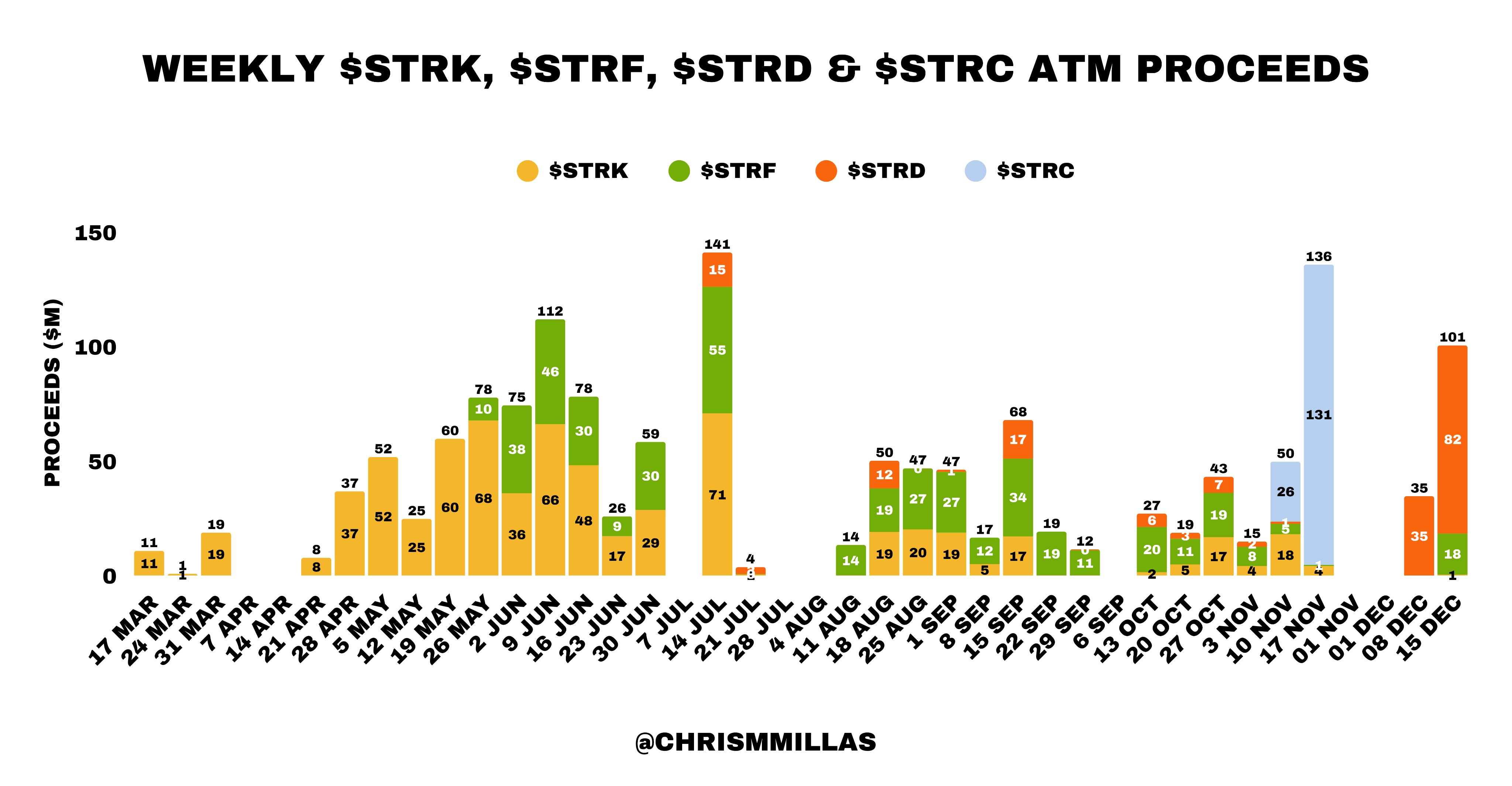 - Strategy sold $82.2 million of STRD through its ATM program last week-biggest since launch! I guess they’re not just giving away free withdrawals! 💰