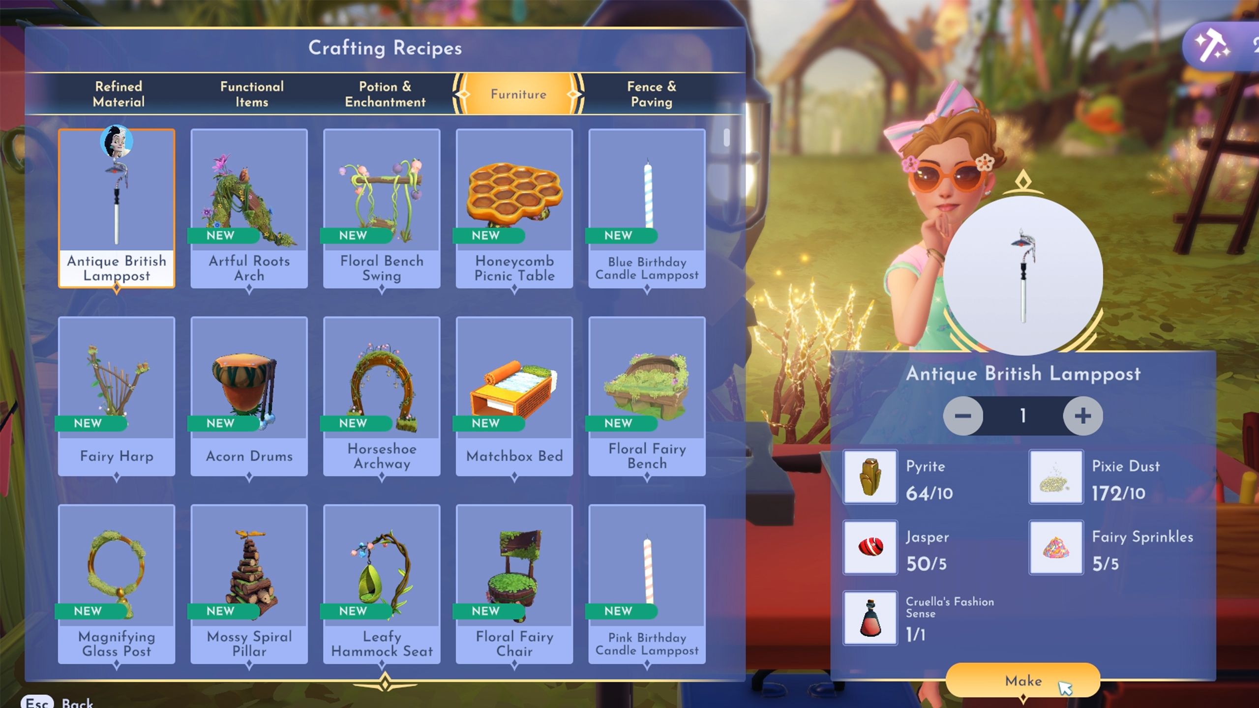 To help Cruella regain her sense of style, build the Antique British Lamppost and place it in the Wishblossom Mountains. This will finish the “Stripes are in this Season” quest in Disney Dreamlight Valley.