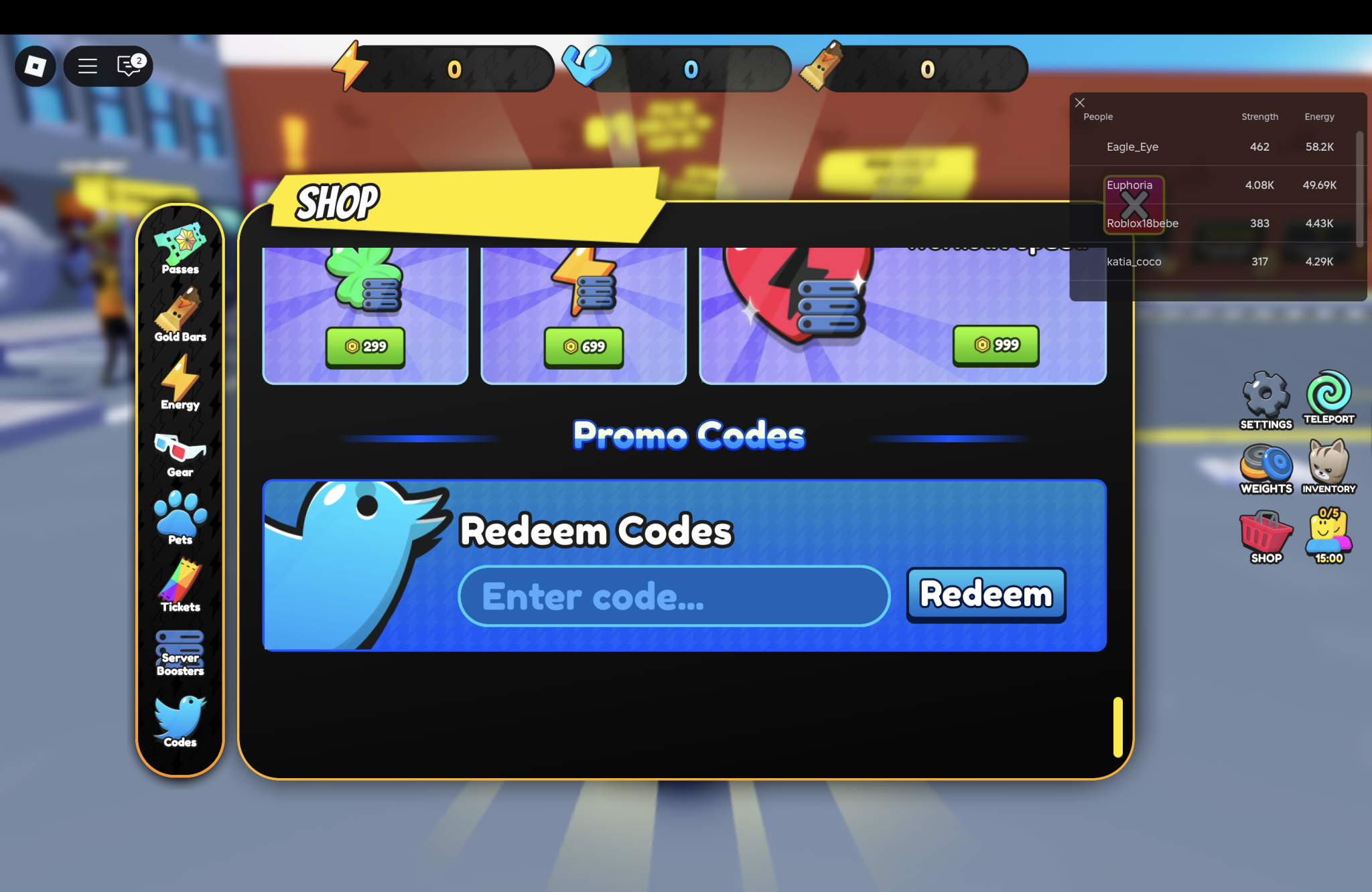 Strongman Ultra is a Roblox game where you simulate going to the gym. You get stronger and more fit by lifting weights, doing cardio, and completing exercises. The main thing you need to manage is energy, which controls how much you can lift and how long you can work out. Instead of spending a lot of time earning rewards, you can use active codes to get free energy and potions. Use these to boost your avatar and transform from a beginner to a fitness pro!