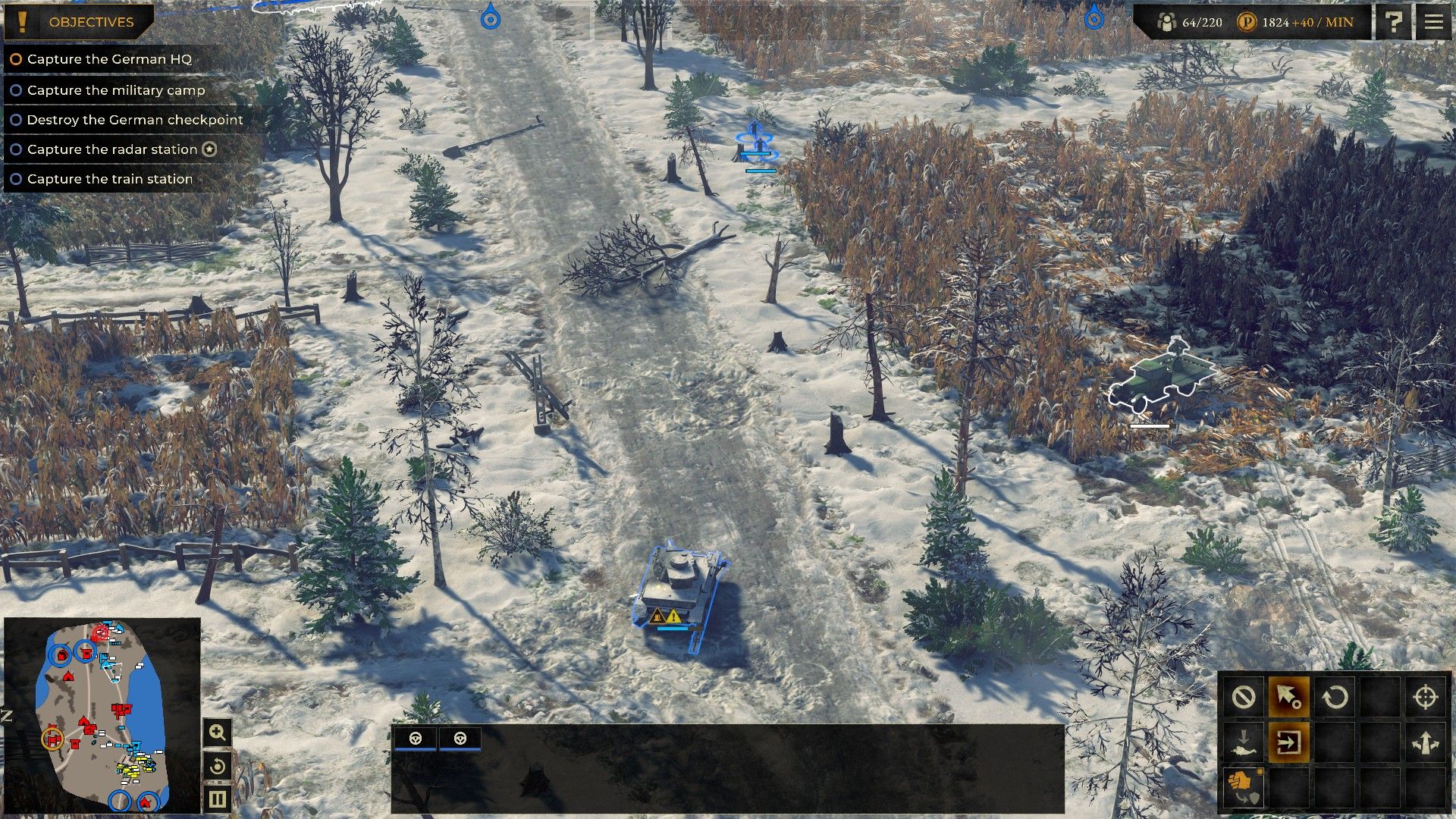 Instead of a traditional tutorial, Sudden Strike 5 provides helpful information through a button located in the top right corner of the screen. However, feeling overconfident, I skipped the guide and jumped straight into a campaign.