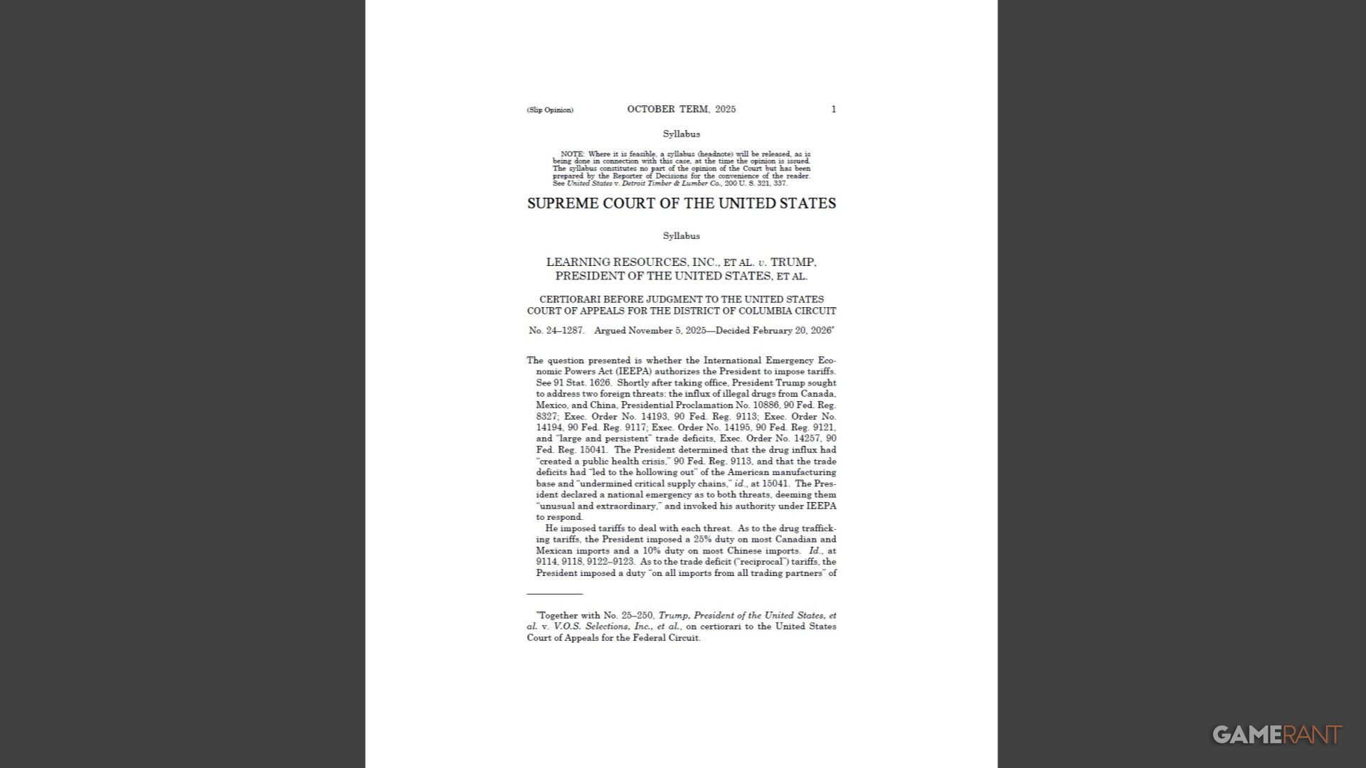 On February 20th, the Supreme Court ruled 6-3 that most tariffs put in place by former President Donald Trump were unconstitutional. These tariffs, which impacted the prices of gaming consoles like the PlayStation 5 and Nintendo Switch, were originally justified by the Trump administration using a 1977 law called the International Emergency Economic Powers Act (IEEPA). The administration used this law to impose tariffs on countries like China, negatively affecting the gaming industry.