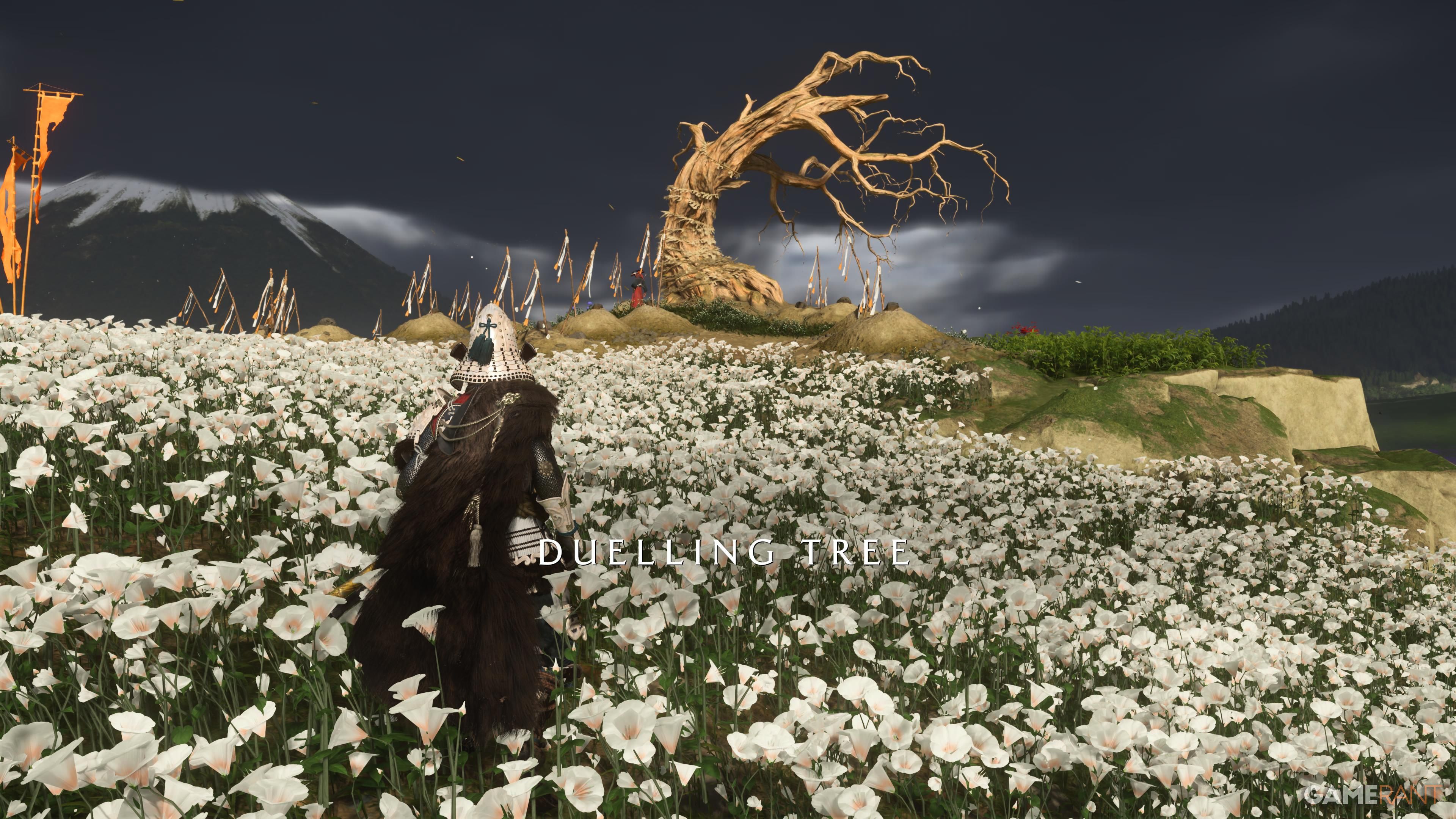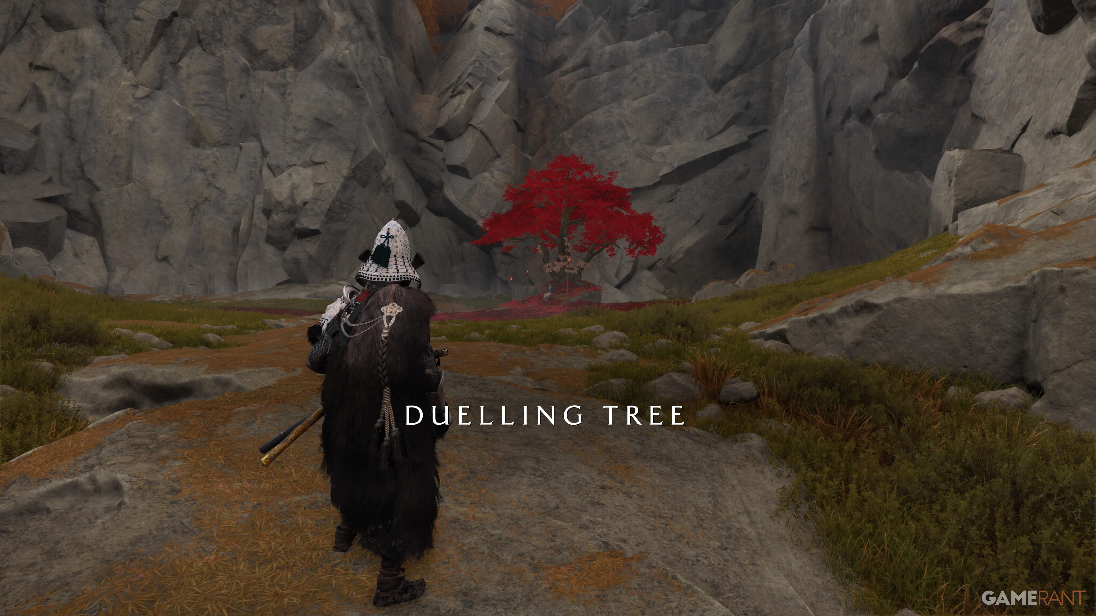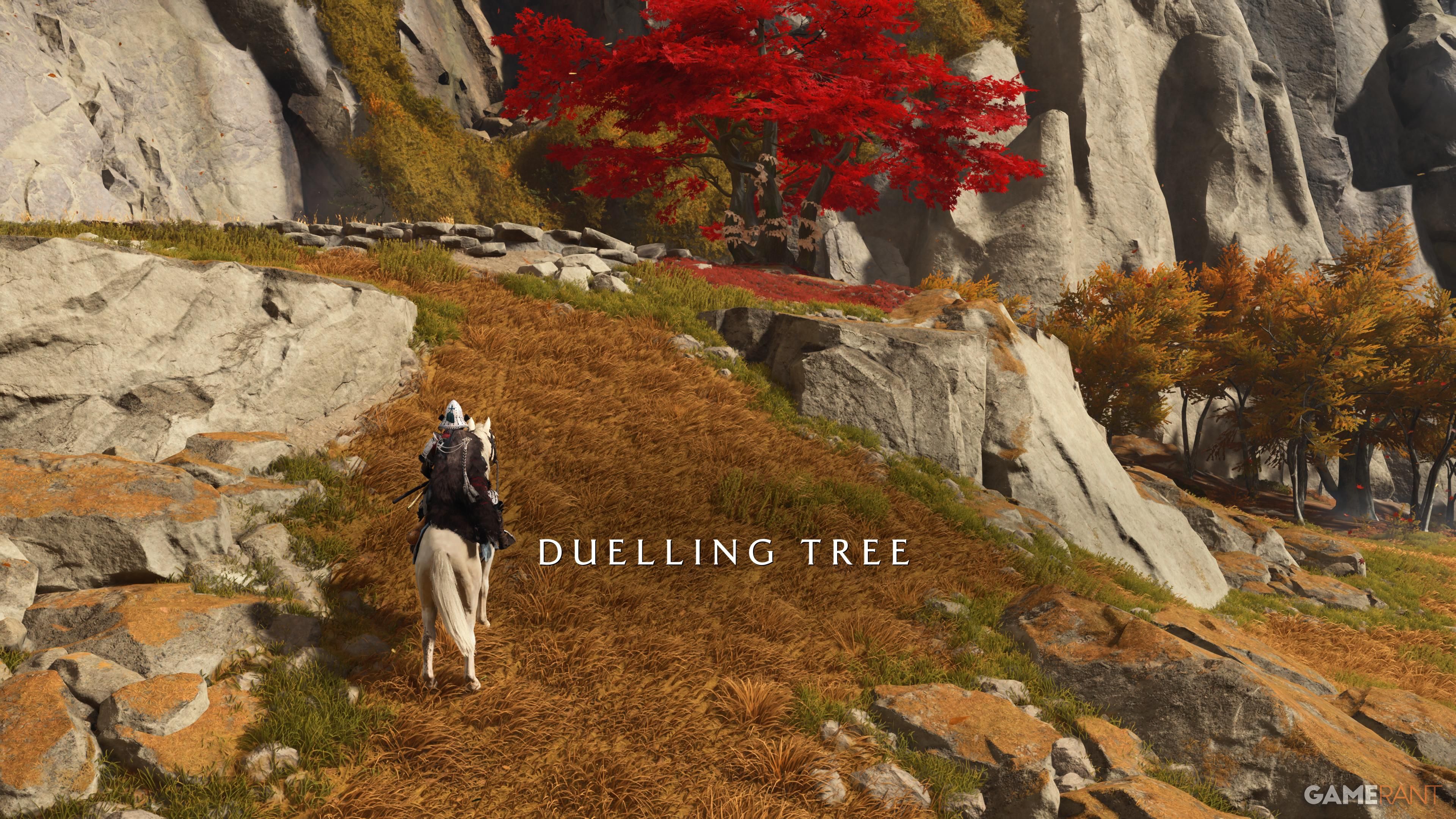 To begin this Tale, you’ll need to find one of the five Dueling Trees located throughout the world. Each of these Dueling Trees is guarded by a disciple of Takezo eager to prove their strength against Takezo. Don’t worry about which tree to visit first – the quest requires you to defeat them all. These trees are large and distinctive, making them easy to spot from a distance. The table below details the location of each Dueling Tree and the rewards for defeating the Ronins guarding them:
