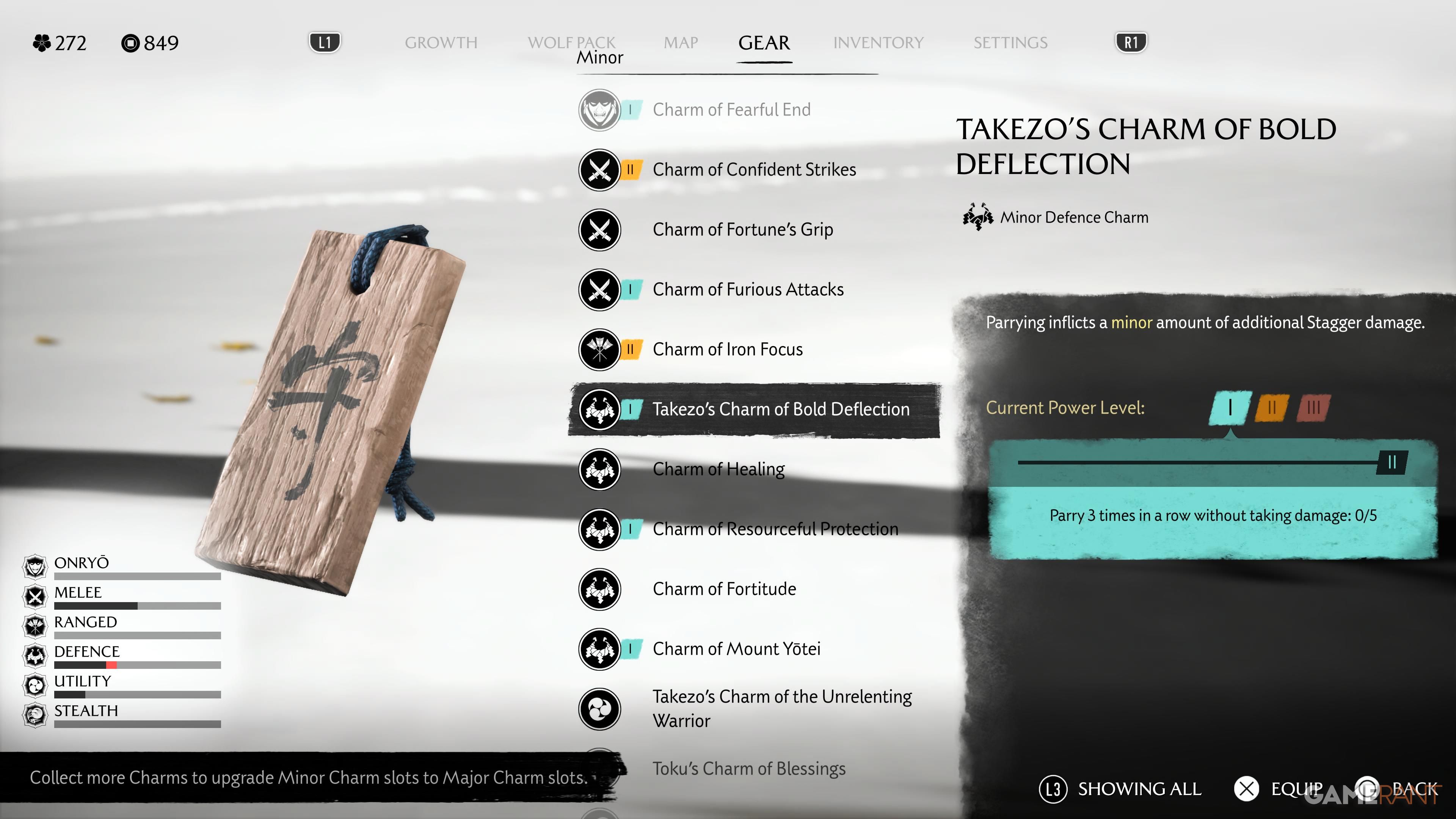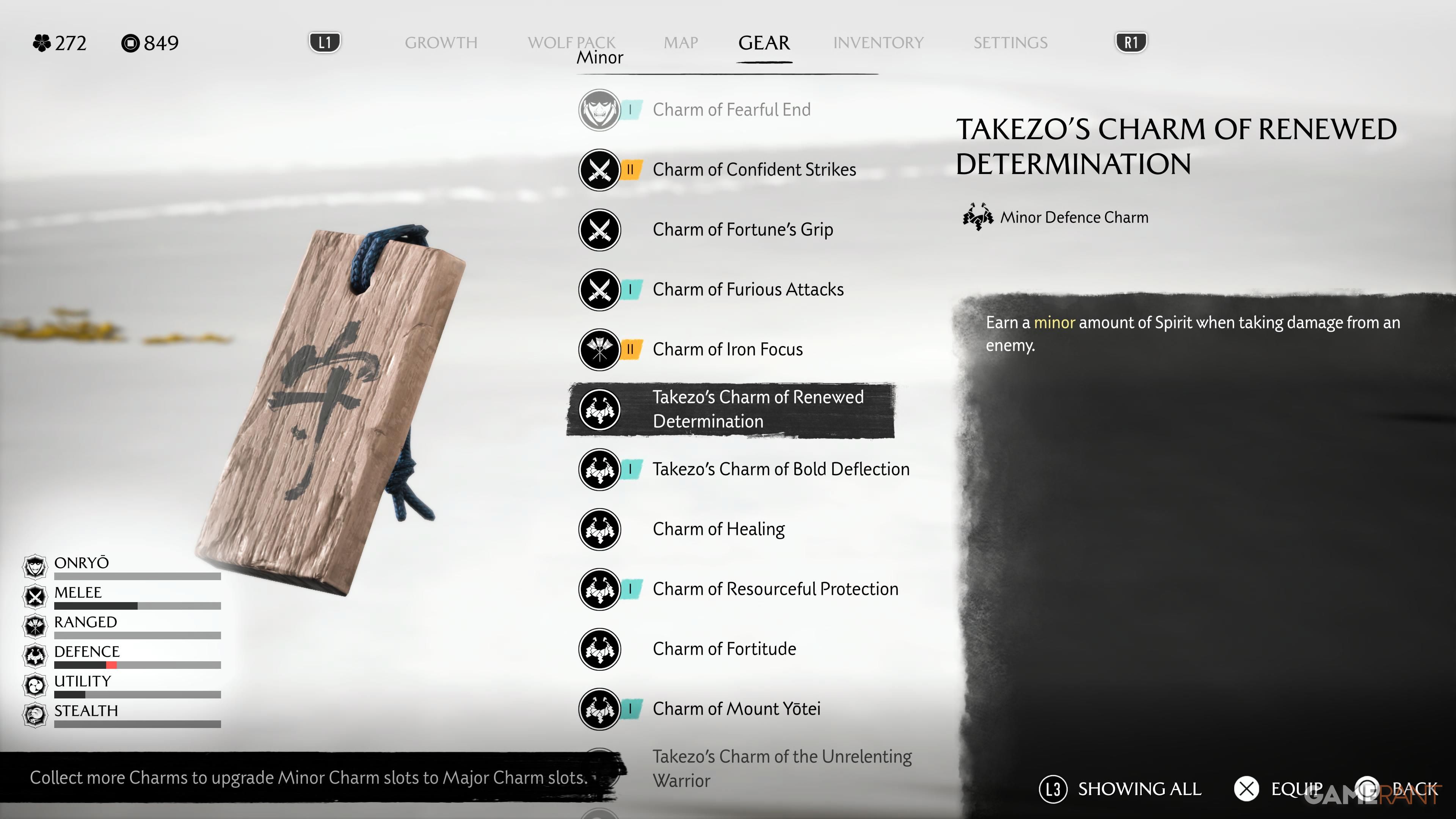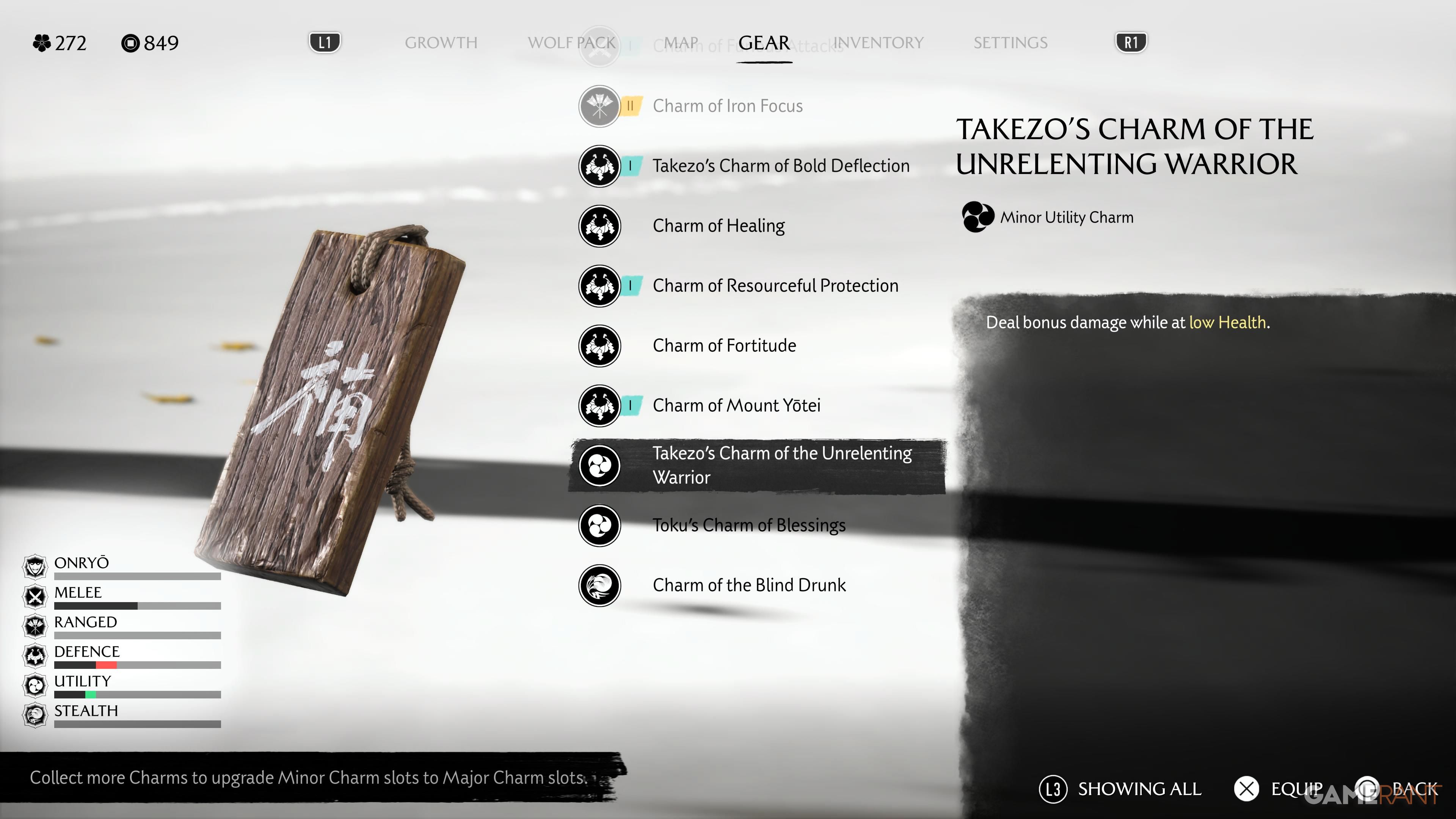 Defeating every Ronin rewards you with a Minor Charm, all of which are different:
