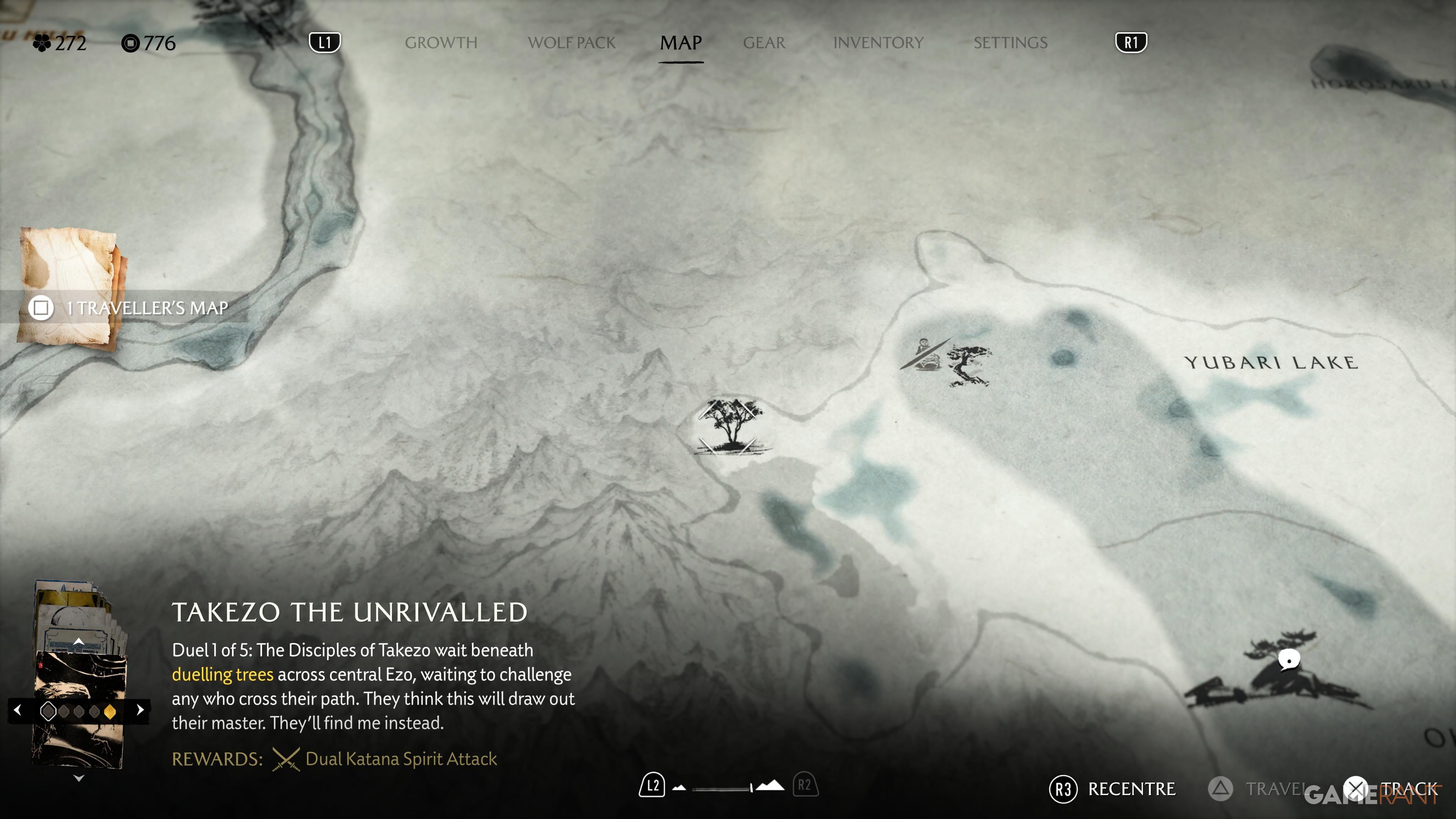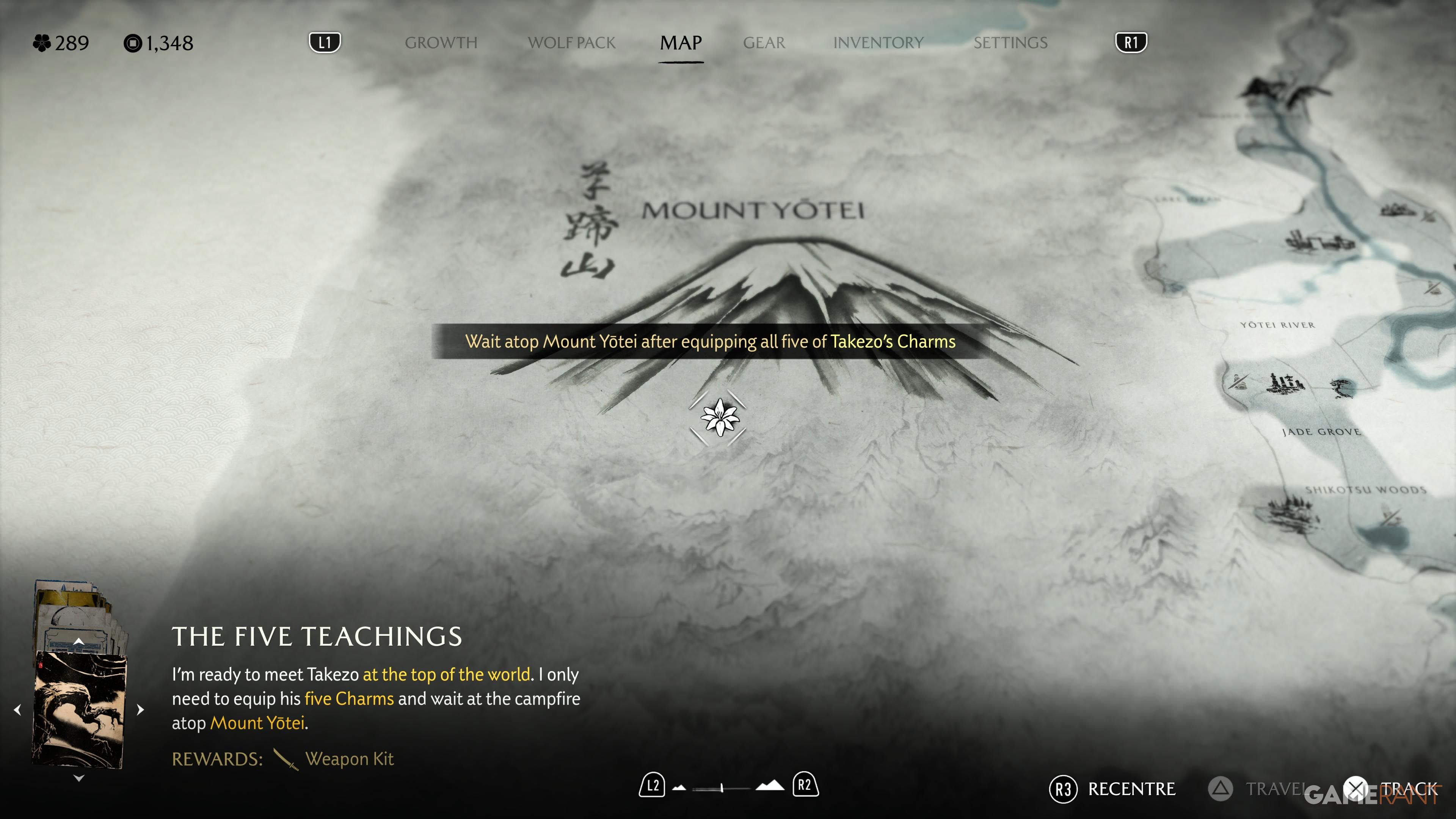 This earlier quest isn’t the last you’ll see of Takezo. Your next task is to climb Mount Yotei and meet him there. If you’ve already reached the summit while searching for the Charm, you can simply fast-travel to the top. Otherwise, head to the Mount Yotei Shrine, located to the northwest of the Yotei River. From there, you can begin the challenging climb to the mountain’s peak.