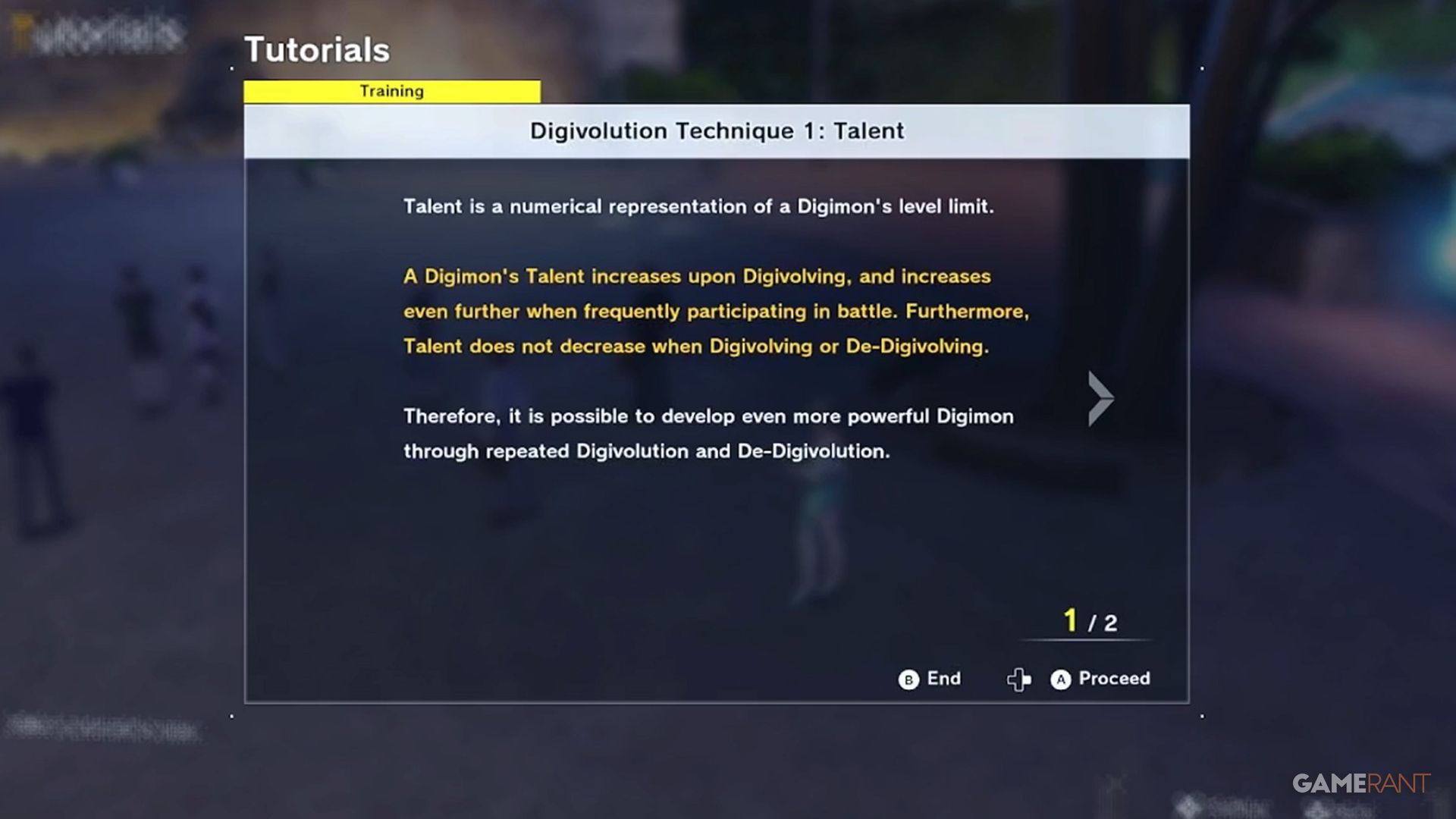 As your Digimon Digivolves, its Talent Level will improve. Importantly, when you De-Digivolve a Digimon, its level will remain the same – it won’t decrease.