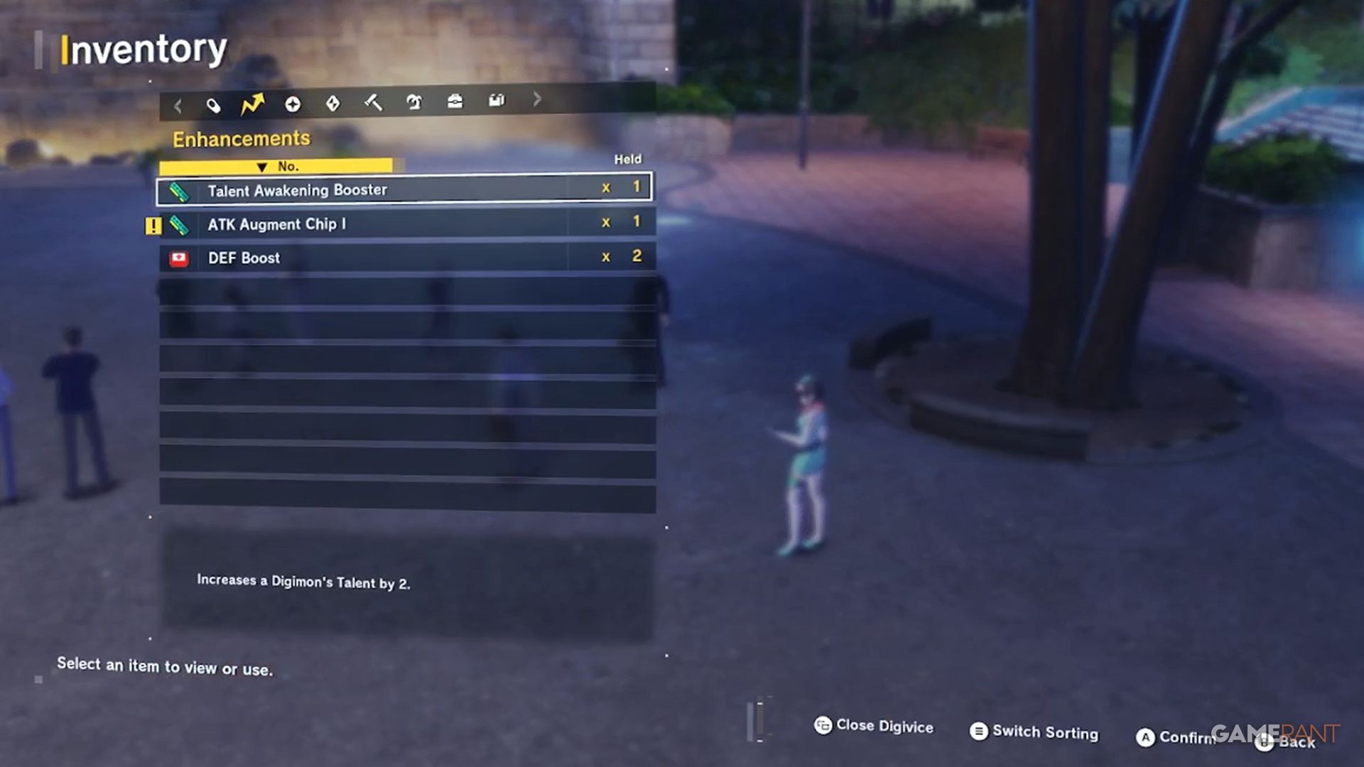 In addition to items you can find while exploring, like the Talent Awakening Booster, there are several other ways to raise your Digimon’s Talent level cap. These include winning battles (and avoiding damage!), training at the farm (which becomes available as you progress through the story), hitting Digimon’s weak spots, and defeating enemies completely.