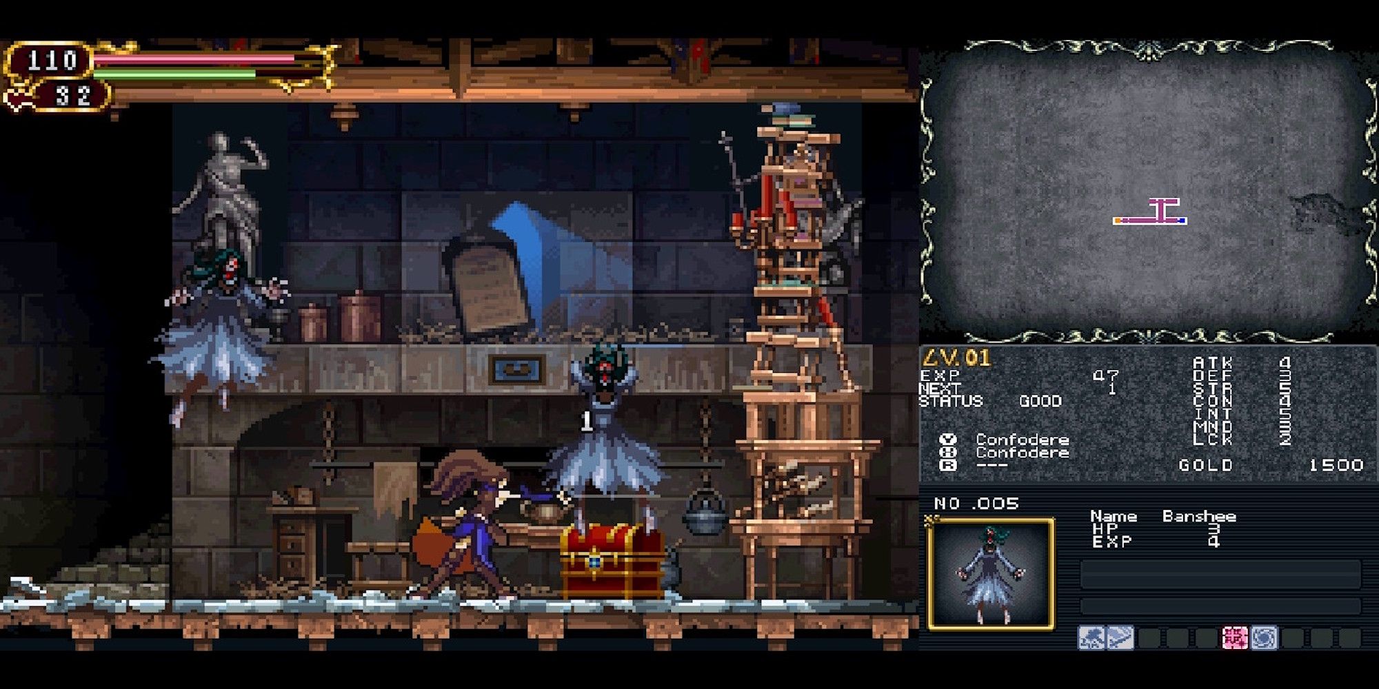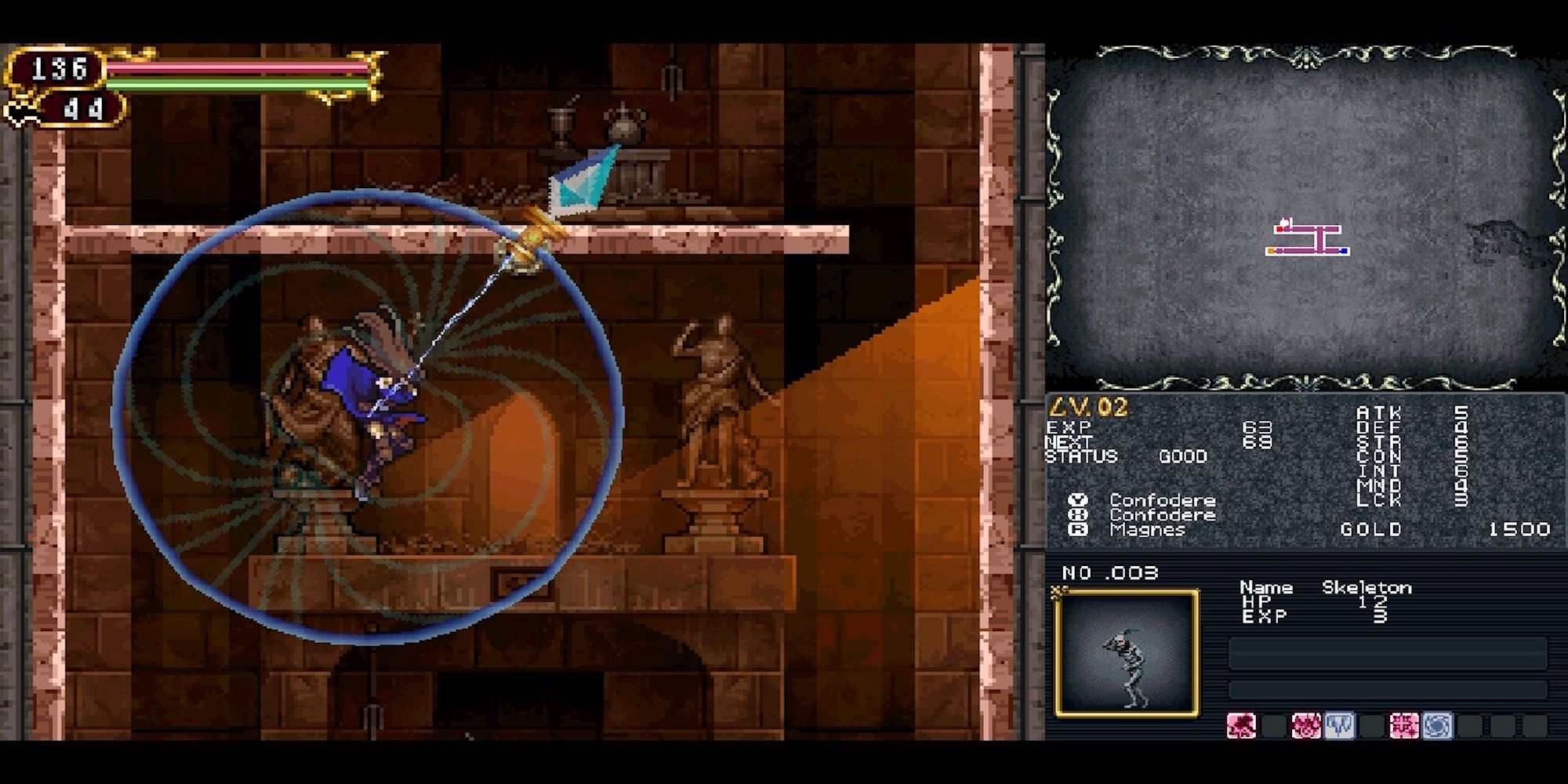 Leaving graphics out of the equation, it’s an outstanding 2D action role-playing game. Battling monsters to acquire their skills, navigating complex stages, and progressing through levels make this game a standout choice, even among the acclaimed Castlevania series.