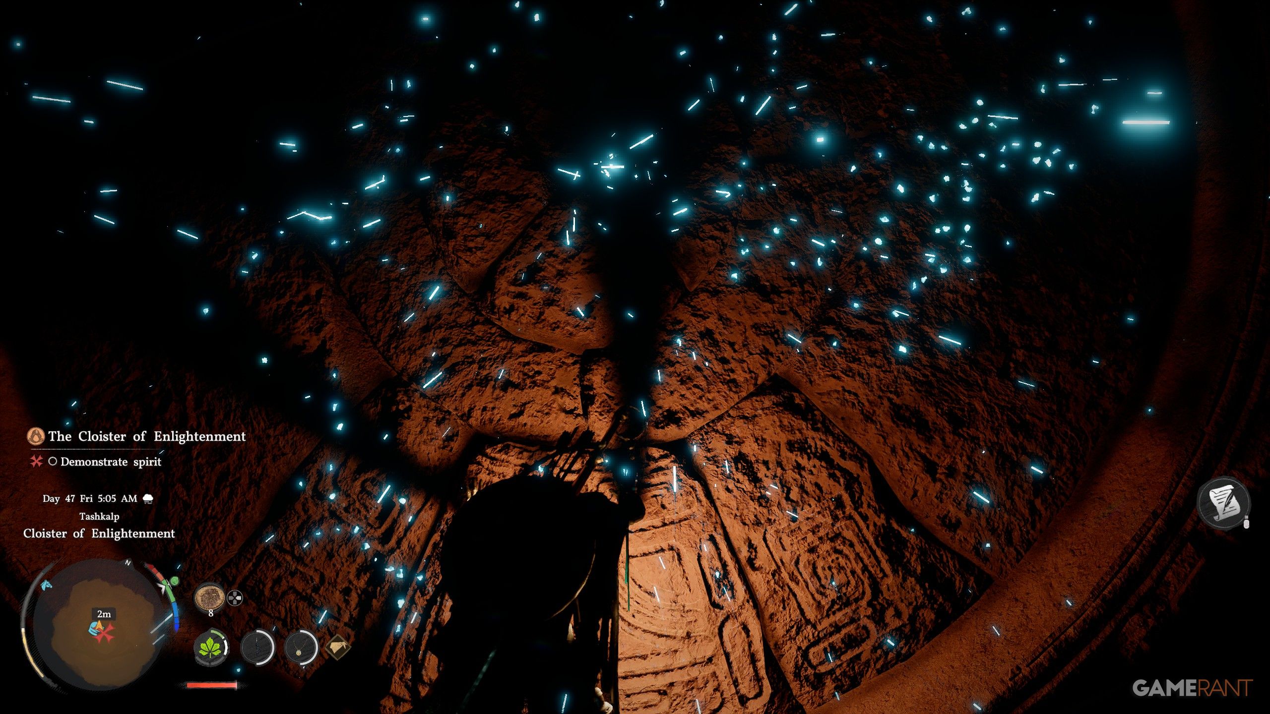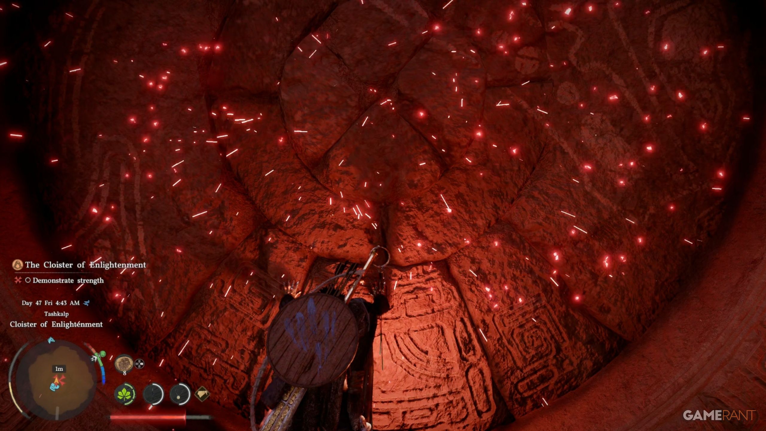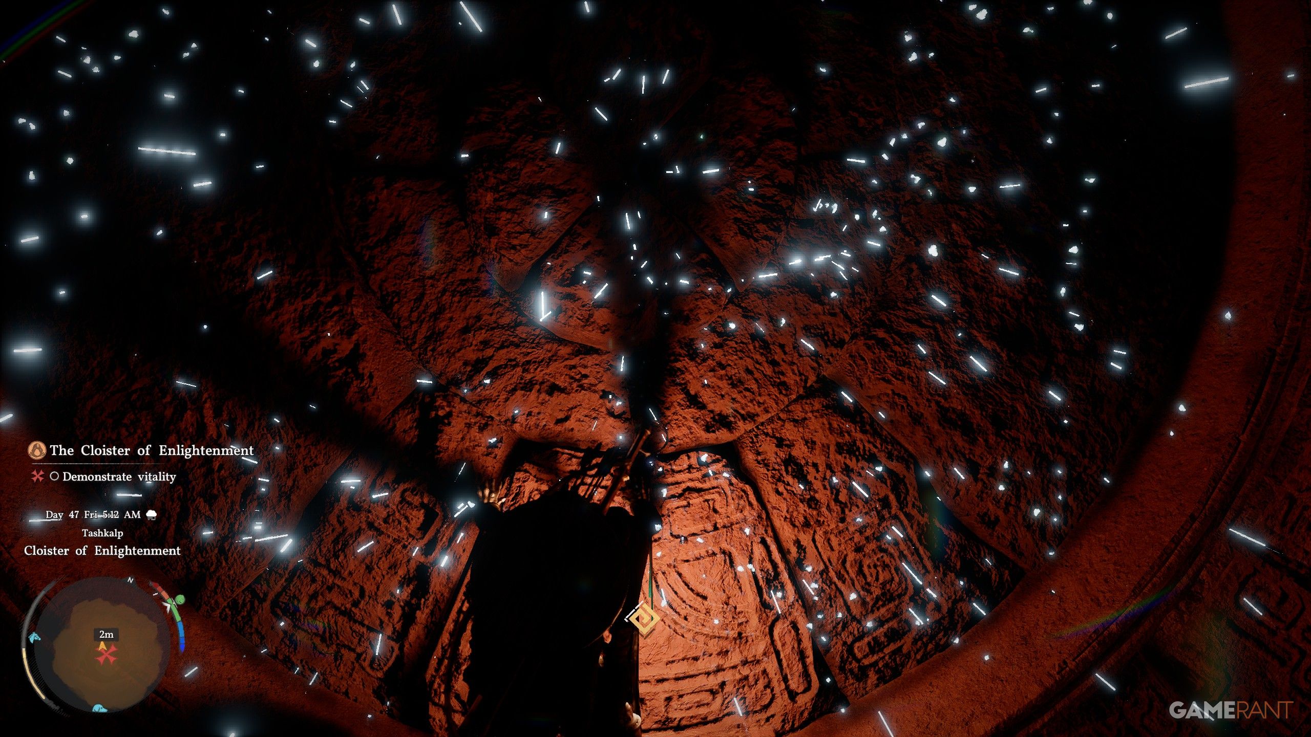 - Approach the circular stone door in the Cloister of Enlightenment and walk into it.