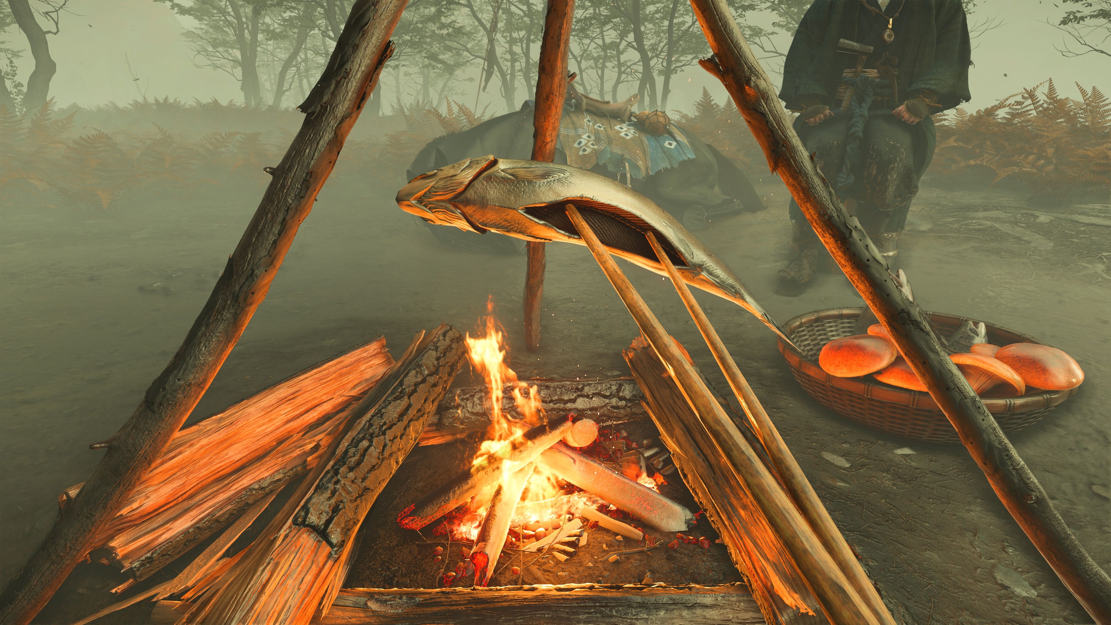 Besides those more engaging options, there are several other, less addictive mini-games, such as activities found at camp. Players can start a fire by quickly flicking stones, or prepare food by flipping fish and mushrooms. Fortunately, both of these can be made easier in the settings, or skipped entirely if desired. Blacksmithing, another mini-game available outside of camp, can also be bypassed; it’s the system players use to upgrade weapons in Ghost of Yotei, including the Wolf Blade.
