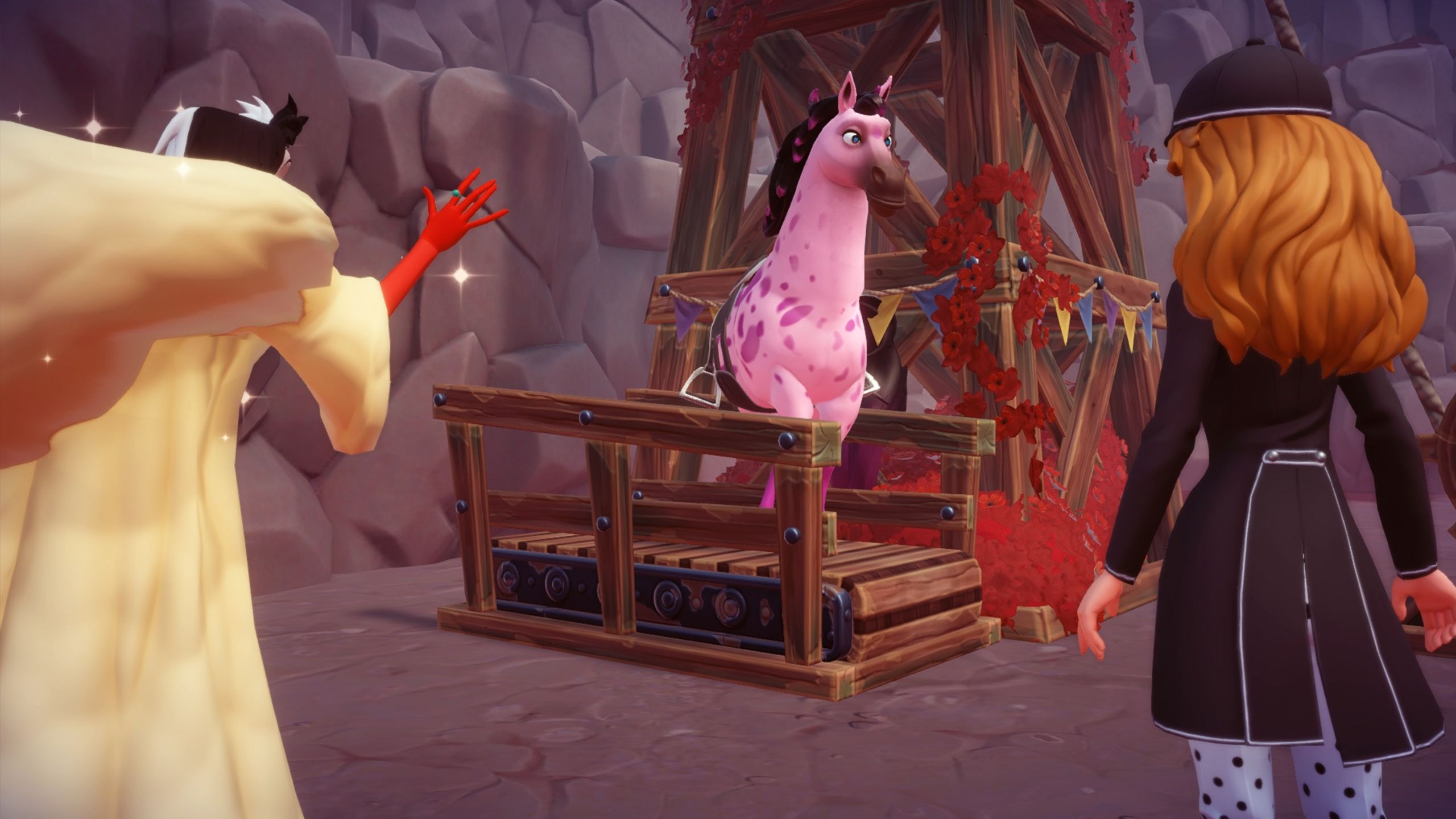 Make the Rope and Pulley Repair Kit and deliver it to Cruella De Vil. She’ll reward you with a Mod Saddle for your Wishblossom Horse, which will be used to pull the car.
