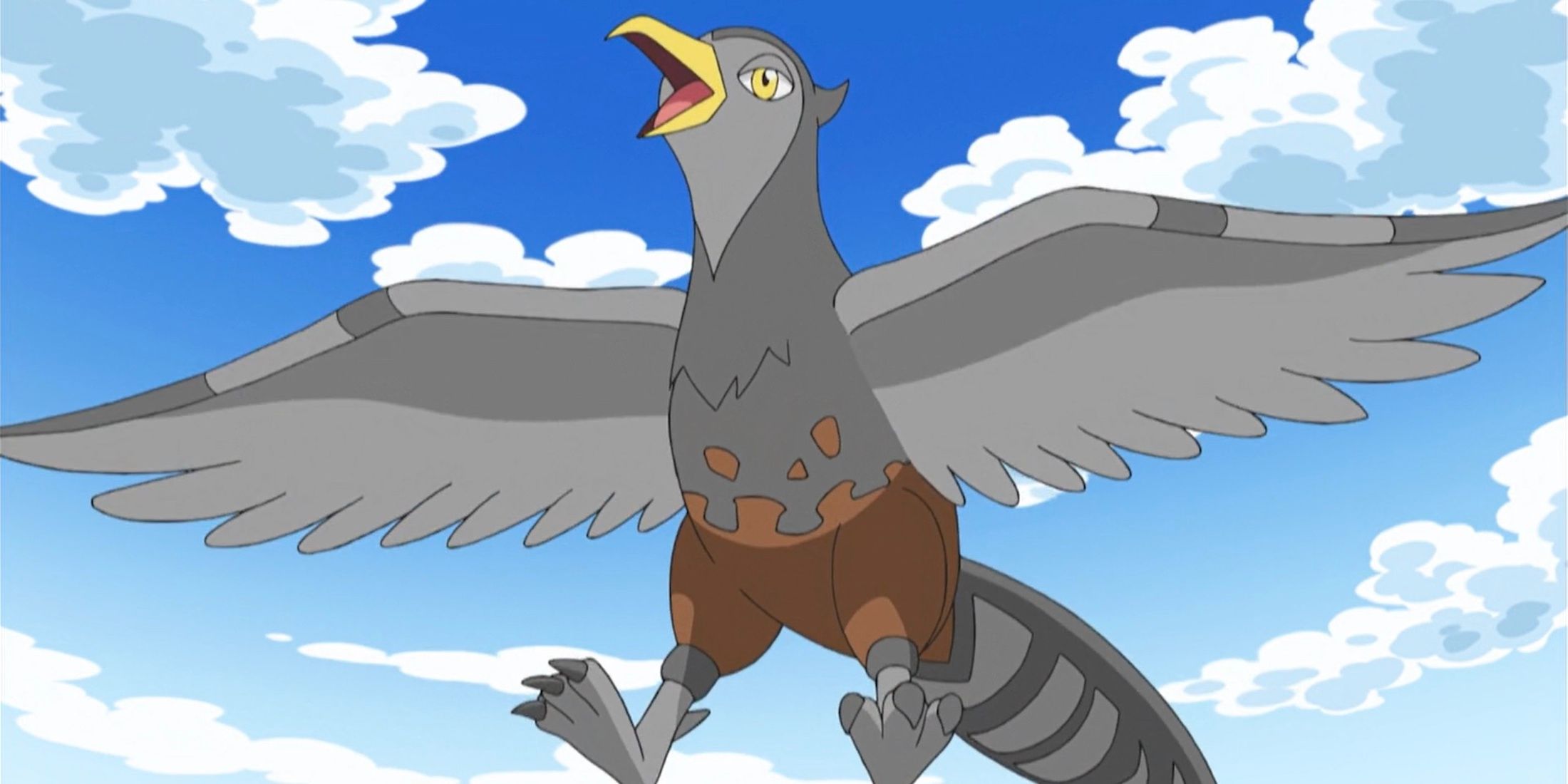 Ash’s first Pokémon in the Sinnoh region, Staraptor, began as a helpful Starly who often scouted ahead. When it evolved into Staravia, it became much more eager to battle, even getting frustrated if Ash didn’t choose it for a fight. This attitude changed again when it finally became Staraptor. Fully evolved, it mastered powerful moves like Brave Bird and Aerial Ace, and was very proud of how strong it had become since its days as a tiny Starly.