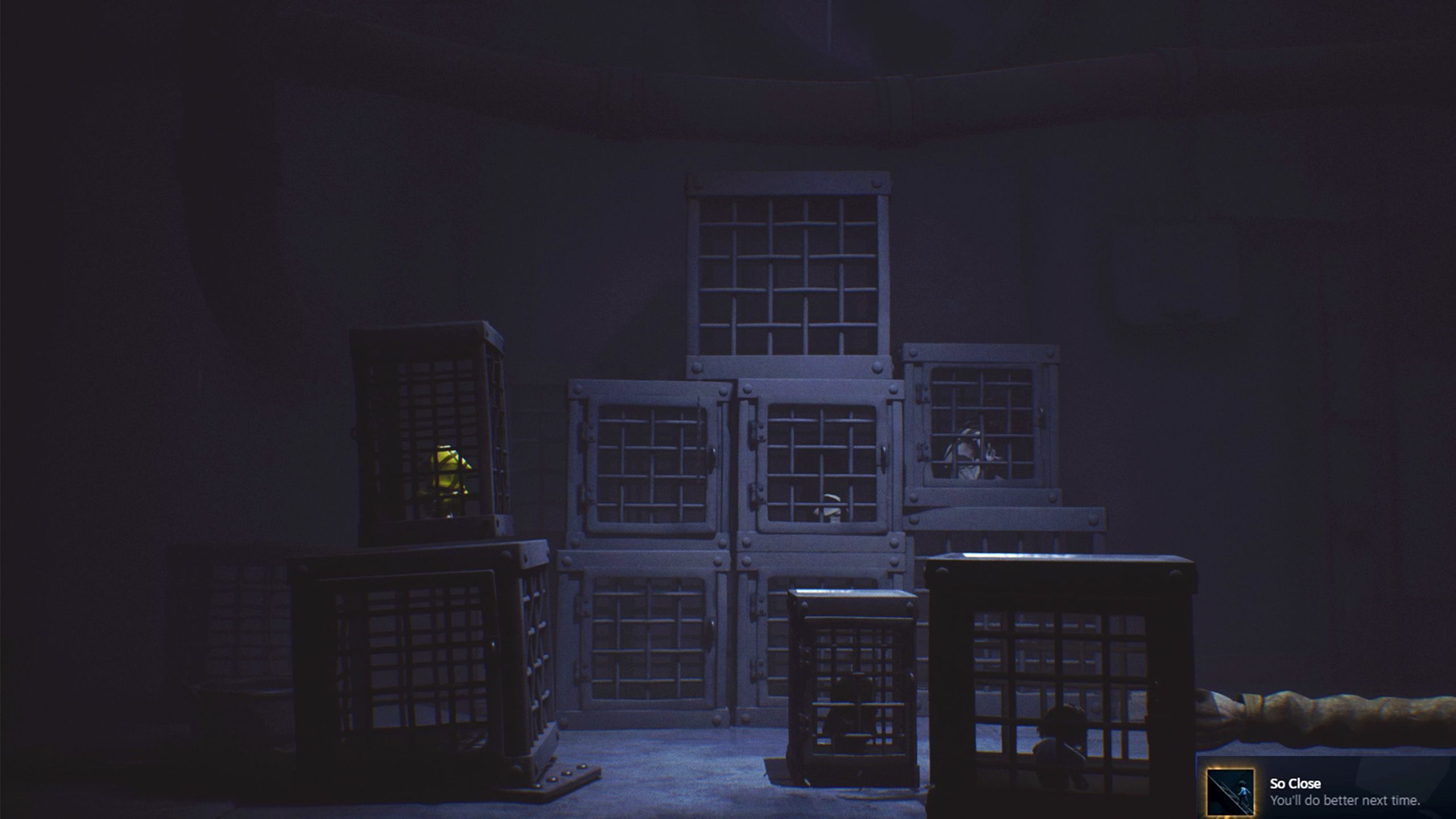 To finish The Depths chapter and earn the “So Close” Achievement, you need to intentionally let the Janitor catch you after climbing the stairs and ladder. You can find The Kid locked in a cage close to where Six is in chapter 2.