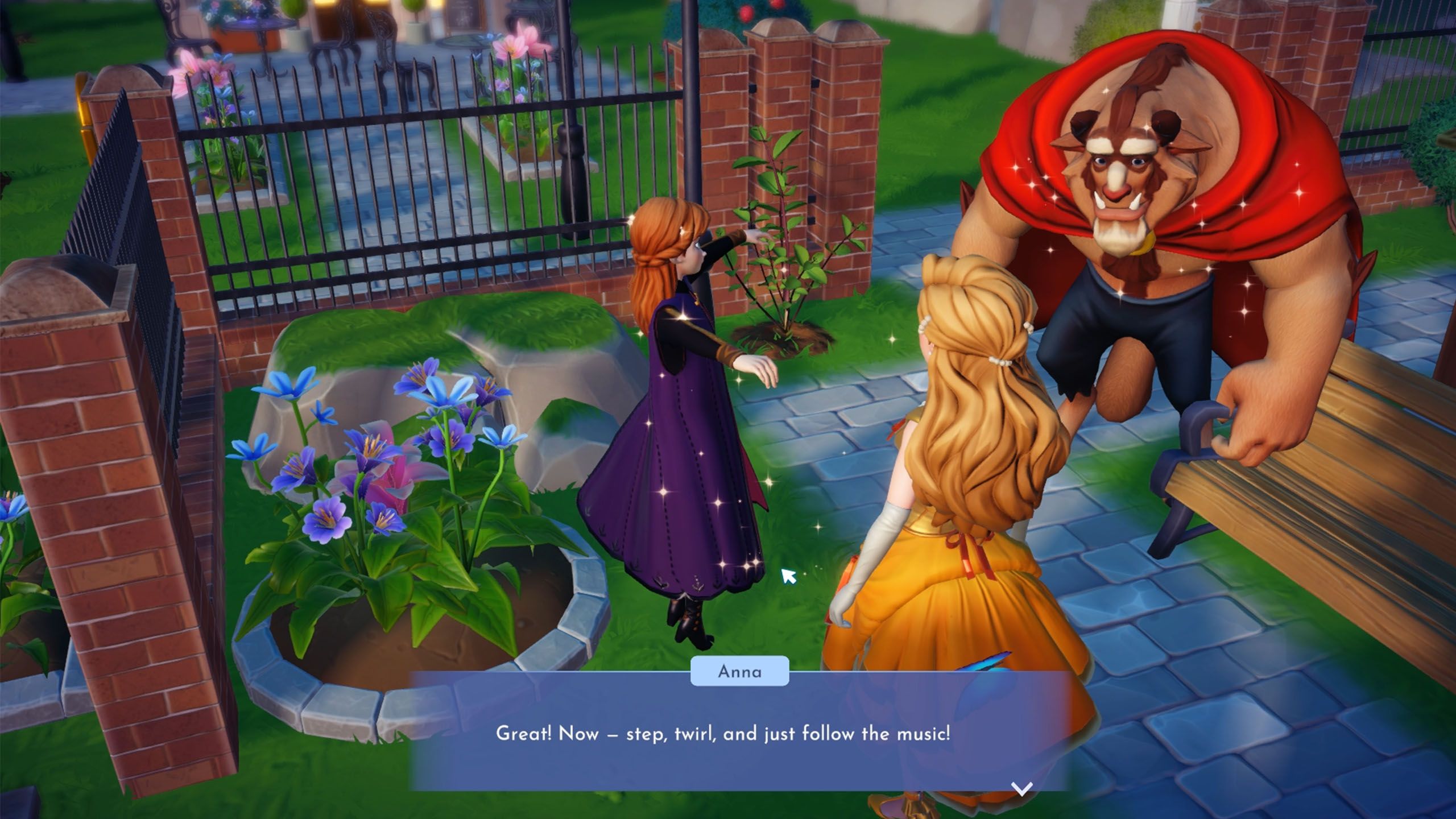 Move the gazebo that you got from the Beast and position it close to the floor and columns you decorated earlier. Then, watch the short scene of Belle and the Beast dancing – this will finish the The Grand Enchanted Ball quest in DDV.