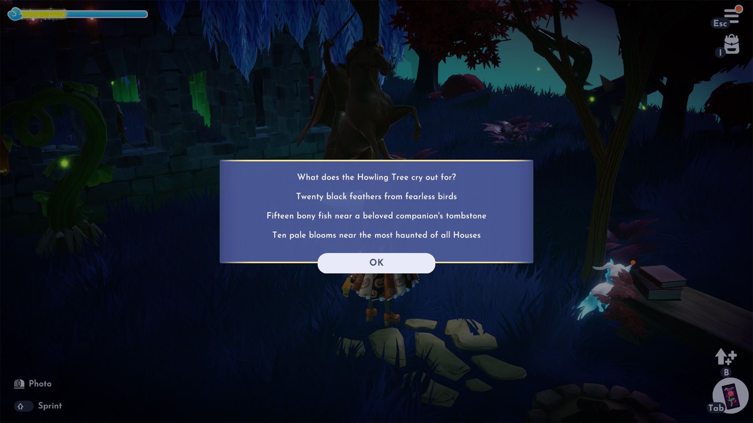 You’ll find this information in a book located near the headless statue behind the Howling Tree. Here are instructions for getting each item:
