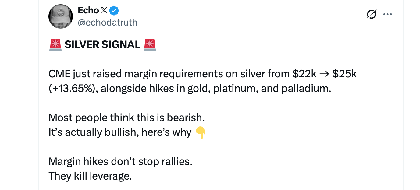 For many, it was as if the big bad exchange had stepped into the ring just when the rally was getting interesting. The chorus of social media wiseguys and silver enthusiasts shrieked that the CME was secretly lending a hand to banks-helping short-sellers knock silver prices down so they could buy physical silver cheaper. Because nothing screams “market manipulation” like raising margins during a rally, right? 🕵️♂️
