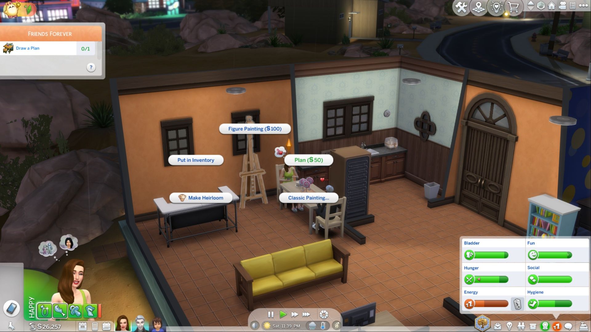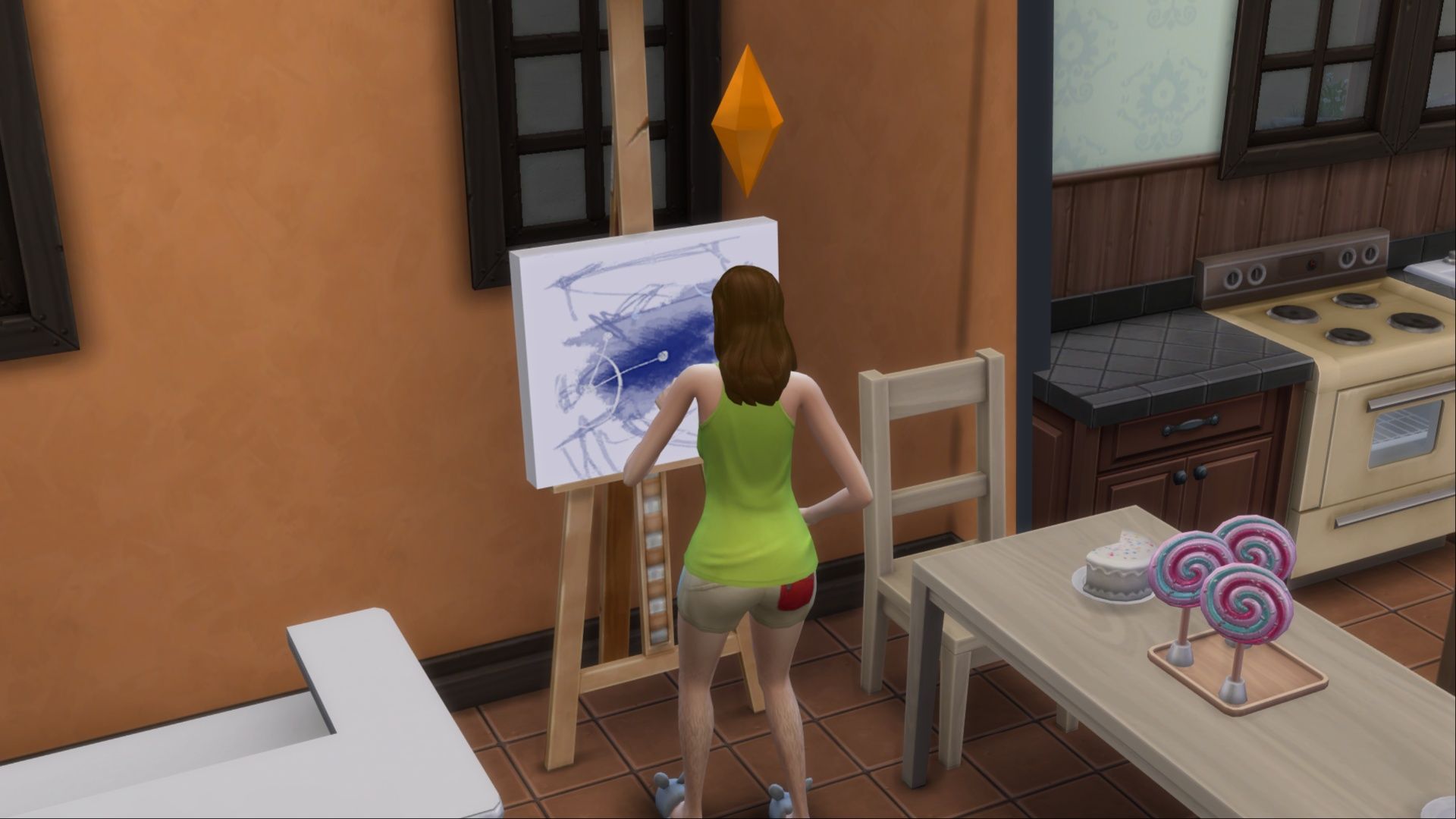 Young Sims can create artwork at the kids’ activity table, while teens and adults can use an easel to do the same.